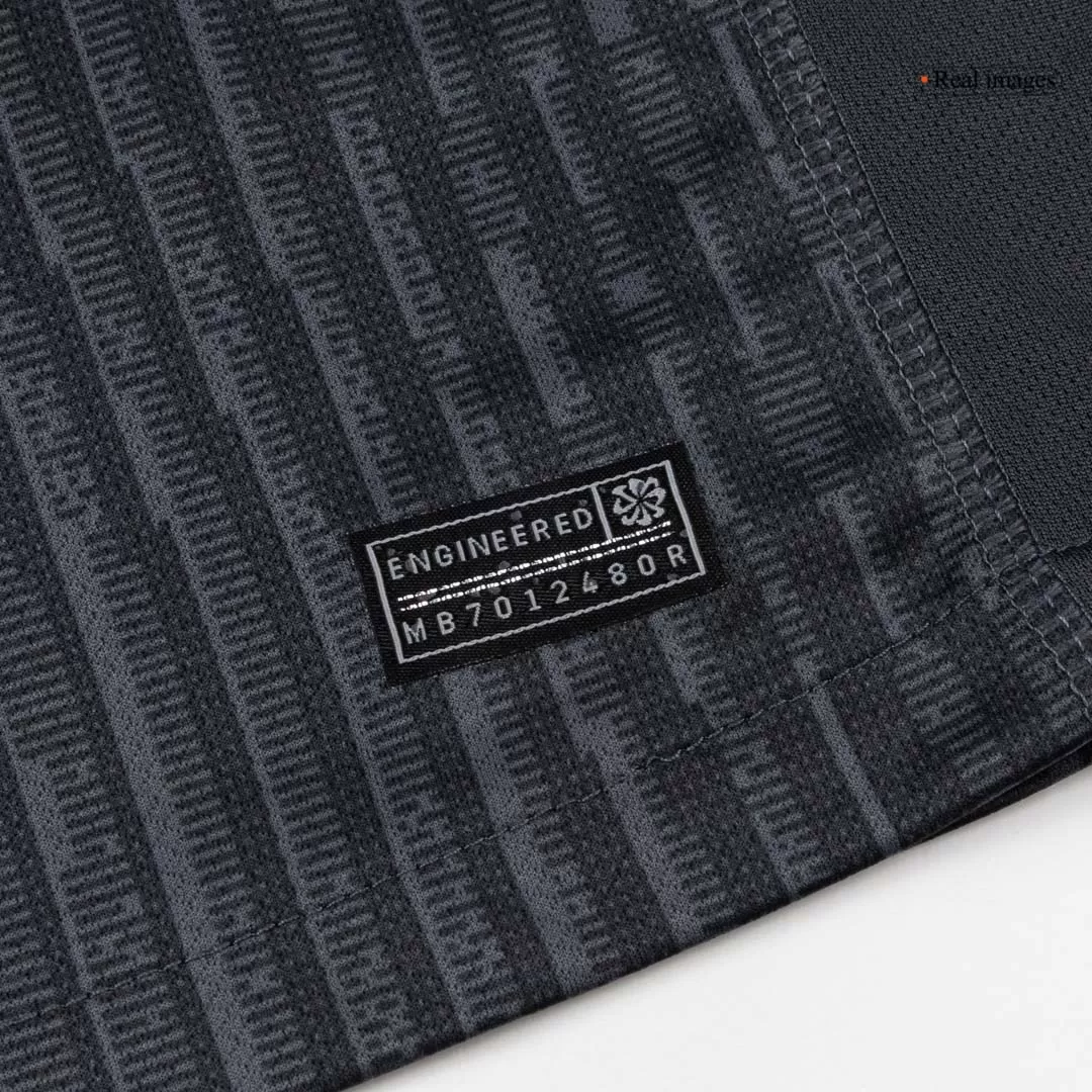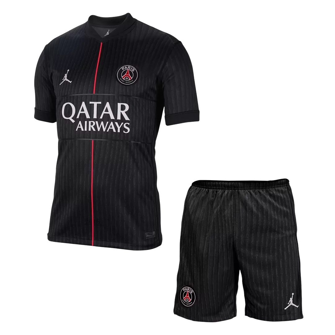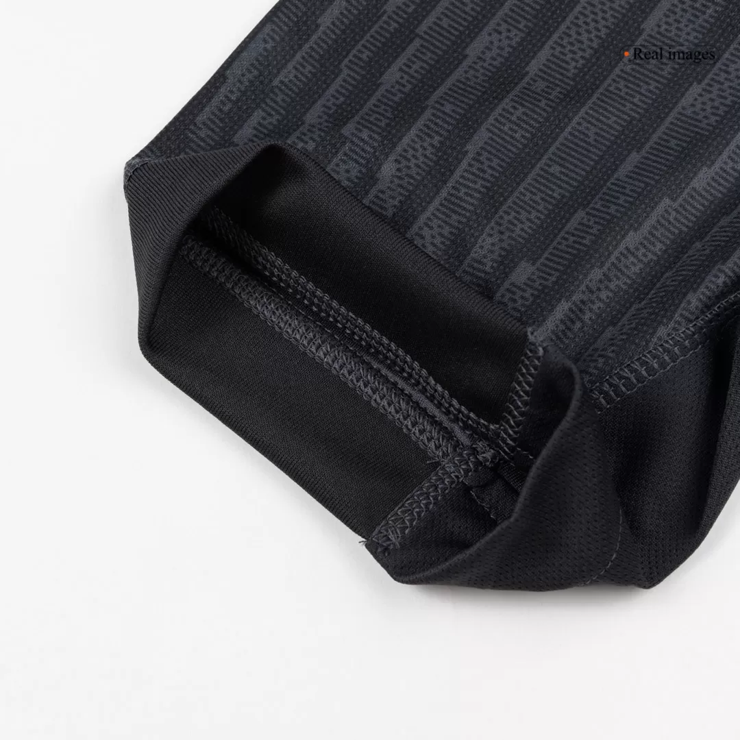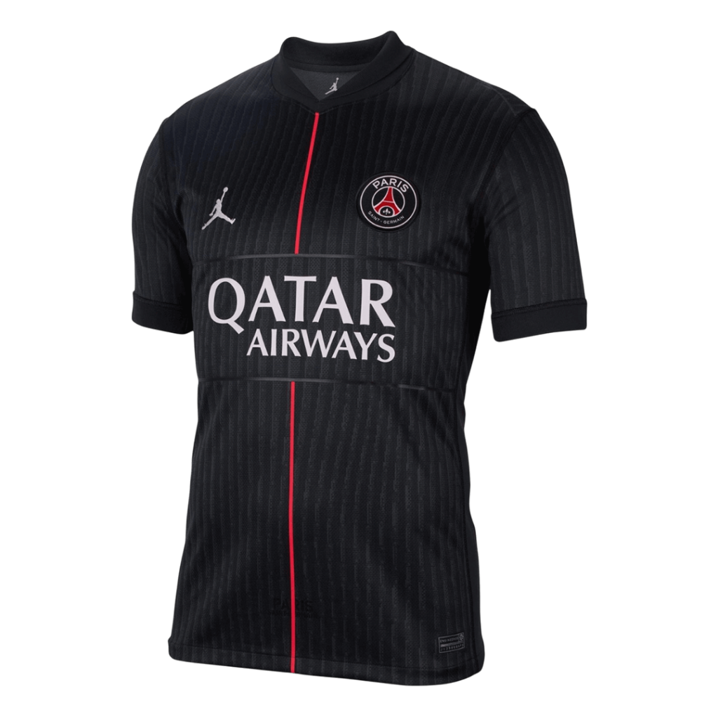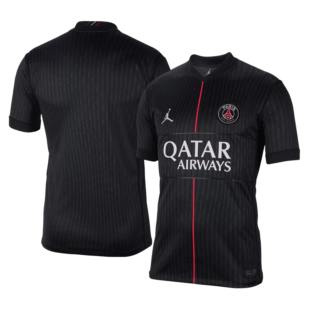 Step into the future of football with the PSG Fourth Away Jerseys Kit 2025/26. Featuring a sleek black design with subtle vertical pinstripes and a bold red stripe down the center, this kit reflects the elegance and power of Paris’ rich football legacy. The minimalistic color palette pays tribute to the city’s modern edge while staying true to the club’s iconic identity.