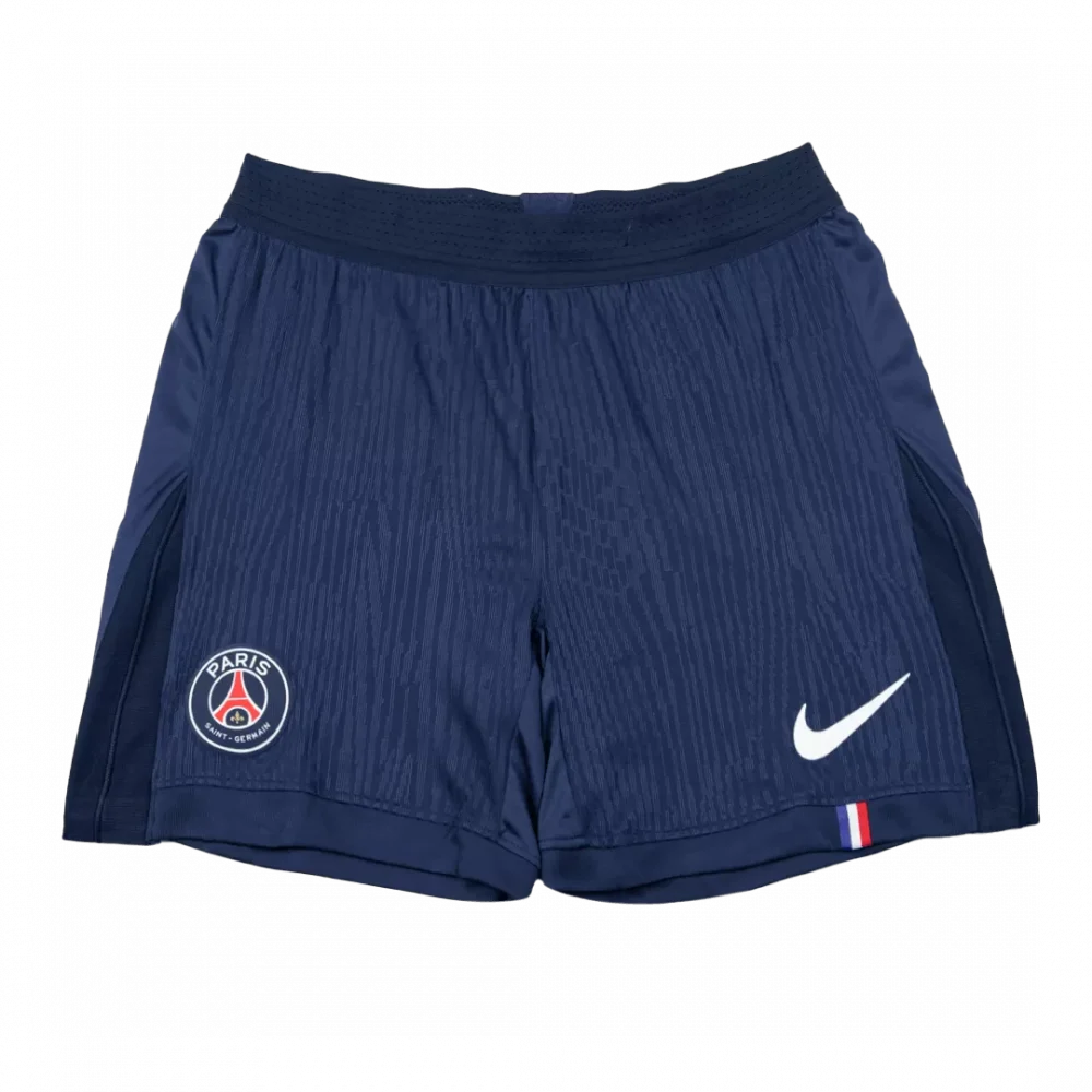 Step into the heart of Paris with the PSG Home Authentic Soccer Shorts 2025/26, crafted in the club’s iconic deep navy blue that echoes their unwavering spirit and rich football heritage. Subtle tonal patterns add a modern texture, while the classic tricolor detail at the hem proudly symbolizes the French capital’s pride. These shorts combine sleek design with essential performance features to keep you comfortable and focused from kickoff to the final whistle.