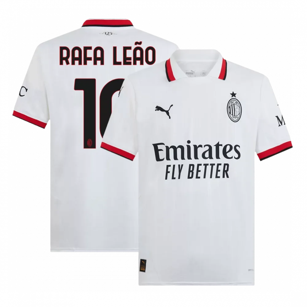 Step onto the pitch with the RAFA LEÃO #10 AC Milan Away Soccer Jersey, featuring a crisp white base accented by bold red and black trim on the collar and sleeves. This sleek design pays tribute to AC Milan’s rich history of elegance and strength, embodying the spirit of the Rossoneri wherever you wear it. Crafted for peak performance, this jersey offers breathable, lightweight fabric with advanced moisture-wicking to keep you cool and dry during every intense moment.