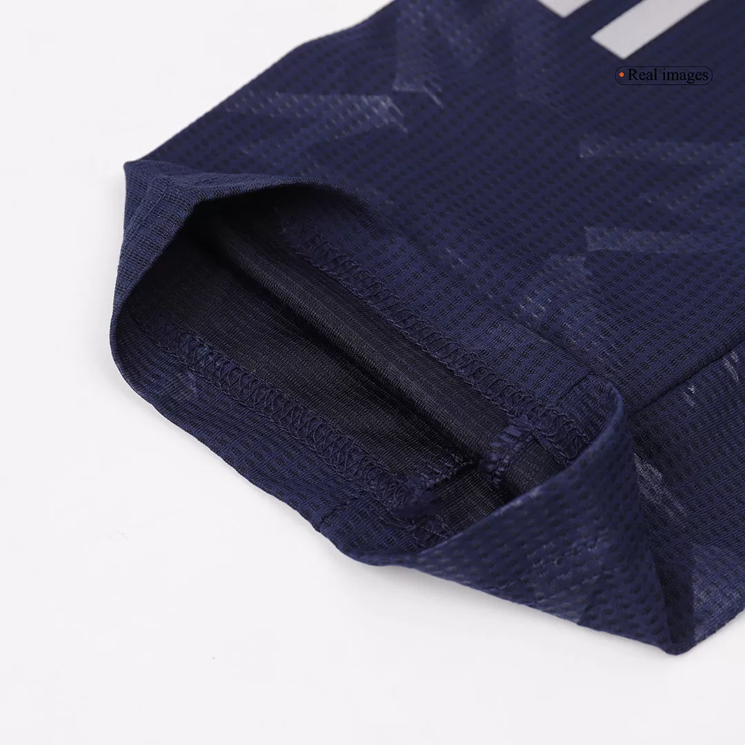 Step out in bold style with the Manchester United Away Authentic Soccer Jersey, featuring Marcus Rashford’s iconic #10. Dressed in a deep navy with subtle geometric patterns and crisp white accents, this jersey captures the club’s resilient spirit and rich legacy. Designed for high performance, its breathable and moisture-wicking fabric keeps you cool and comfortable, whether on the pitch or in the stands.