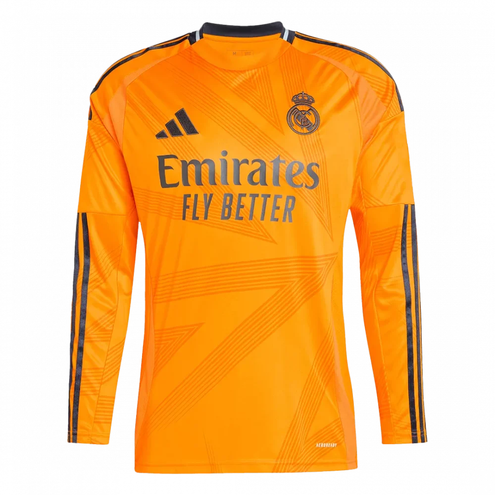 Step onto the pitch with the striking Real Madrid Away Long Sleeve Jersey, where vibrant orange tones meet dynamic starburst patterns to create a bold statement. This jersey honors Real Madrid’s legacy of passion and excellence, connecting fans to the club’s relentless pursuit of victory. Engineered for peak performance, it features breathable, moisture-wicking fabric that keeps you comfortable through every moment of the game.
