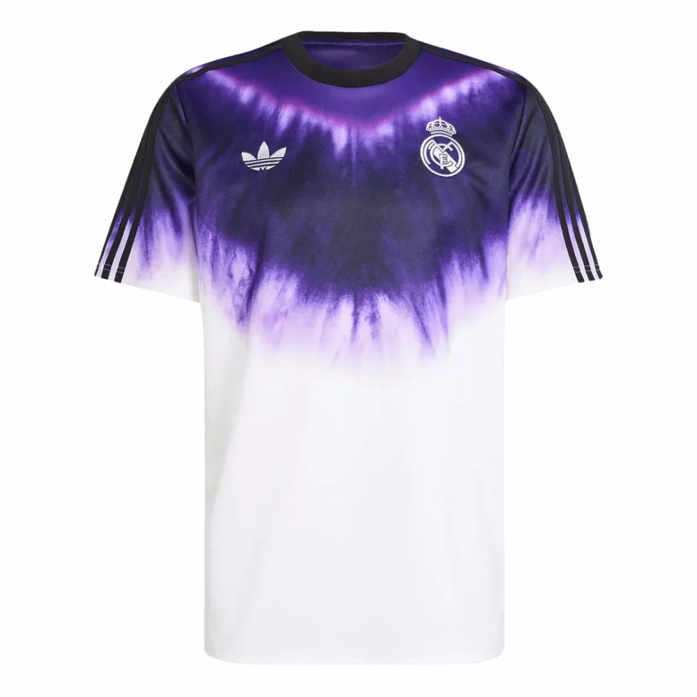 Celebrate a fusion of tradition and bold style with the Real Madrid CNY Soccer Jersey. Featuring a striking purple and white tie-dye effect that symbolizes energy and transformation, this jersey pays homage to a club renowned for its excellence and dynamic spirit. The classic crew neck and subtle team crest bring a timeless touch, making it perfect for fans who live and breathe the game.