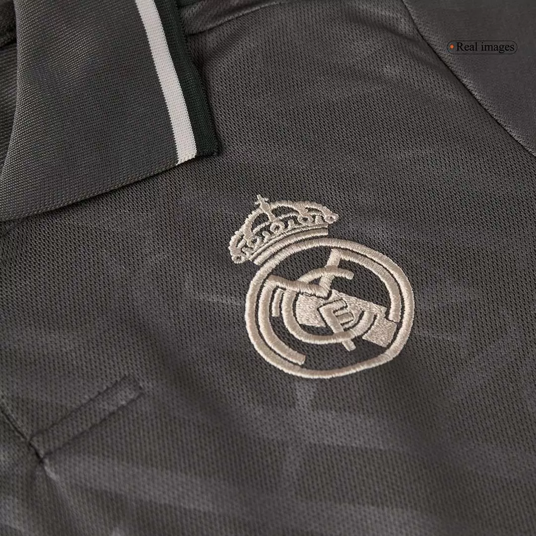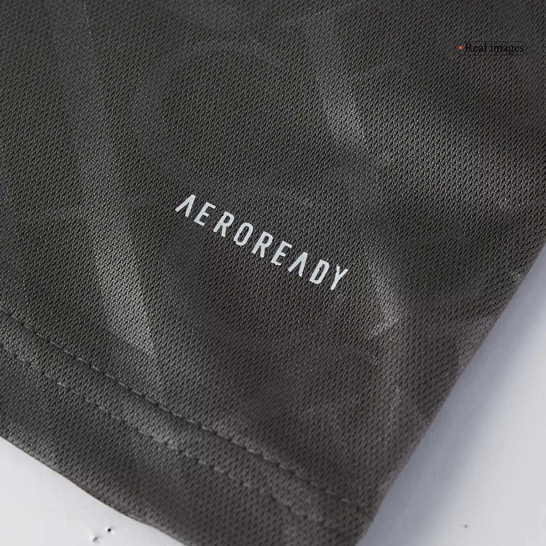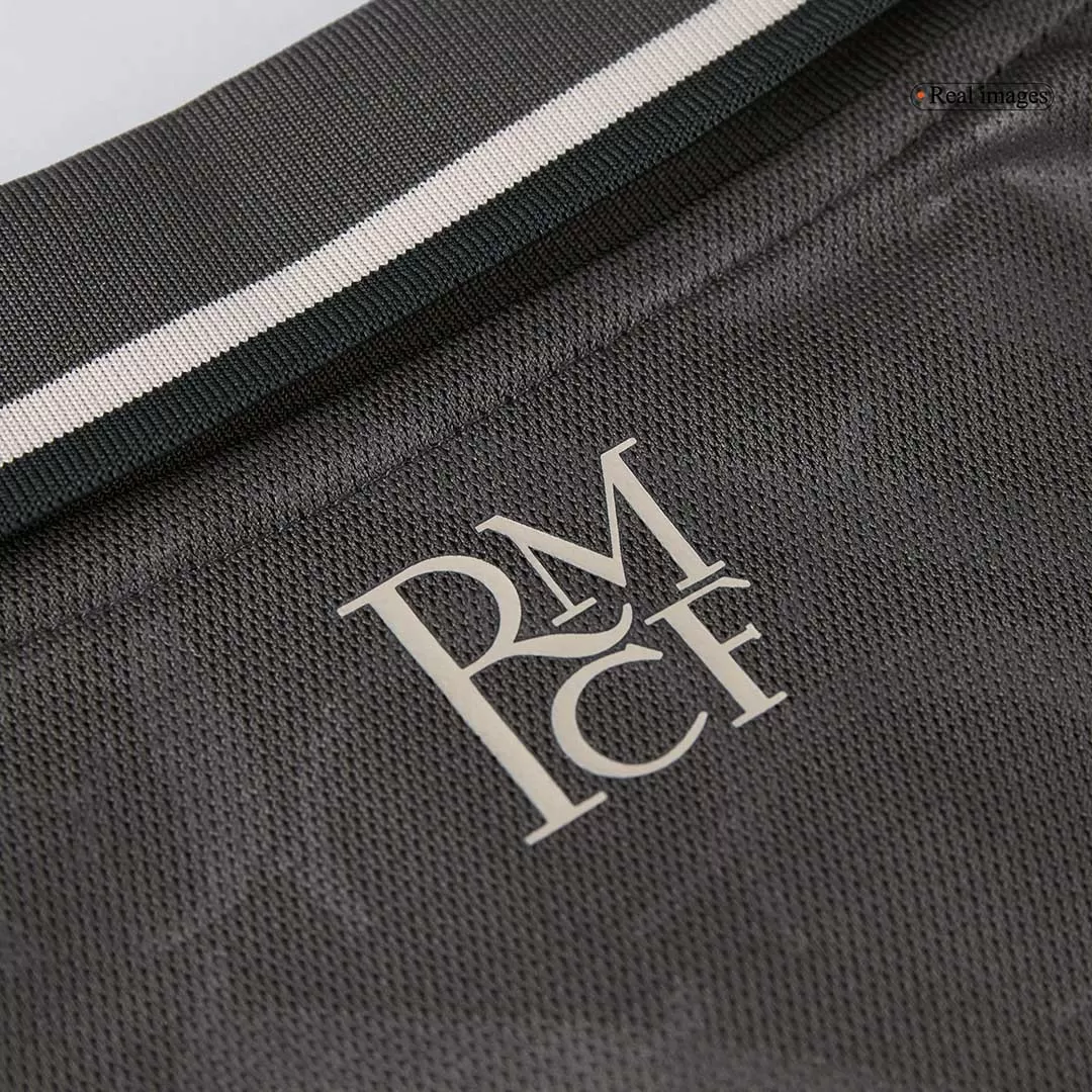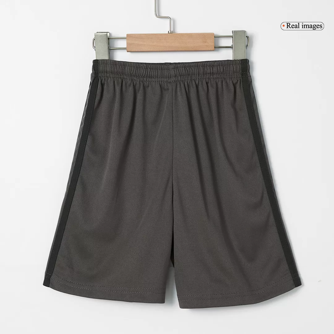 Step into the legacy of one of football’s greatest with the Real Madrid Third Away Kids Soccer Jerseys Kit. This sleek, dark charcoal kit features a subtle tonal pattern that echoes the club’s rich heritage, paired with clean white accents on the collar and cuffs for a sharp, modern look. Perfect for young fans ready to embrace the spirit of Los Blancos, this kit combines timeless style with high-performance details to keep kids comfortable and confident on the pitch.
