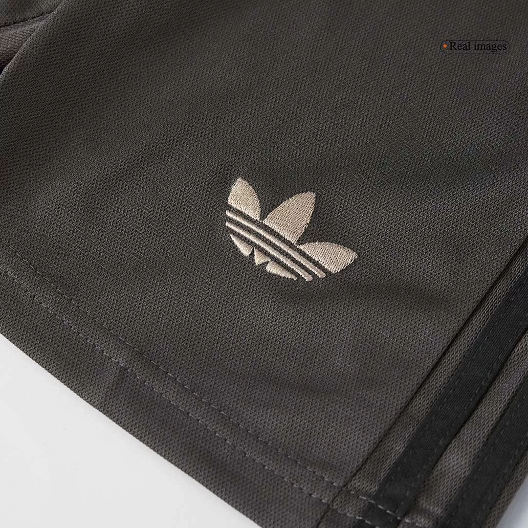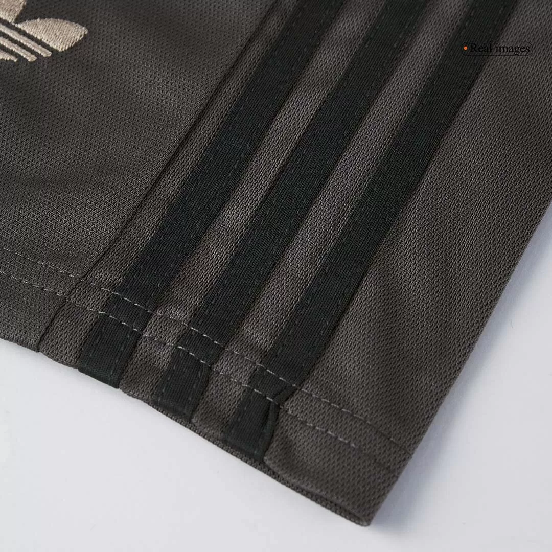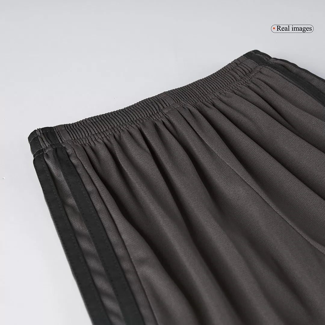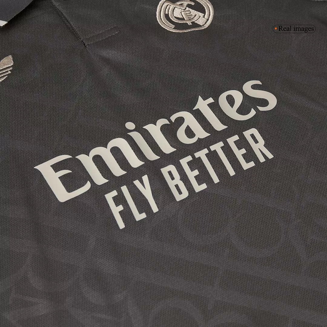 Step into the legacy of one of football’s greatest with the Real Madrid Third Away Kids Soccer Jerseys Kit. This sleek, dark charcoal kit features a subtle tonal pattern that echoes the club’s rich heritage, paired with clean white accents on the collar and cuffs for a sharp, modern look. Perfect for young fans ready to embrace the spirit of Los Blancos, this kit combines timeless style with high-performance details to keep kids comfortable and confident on the pitch.