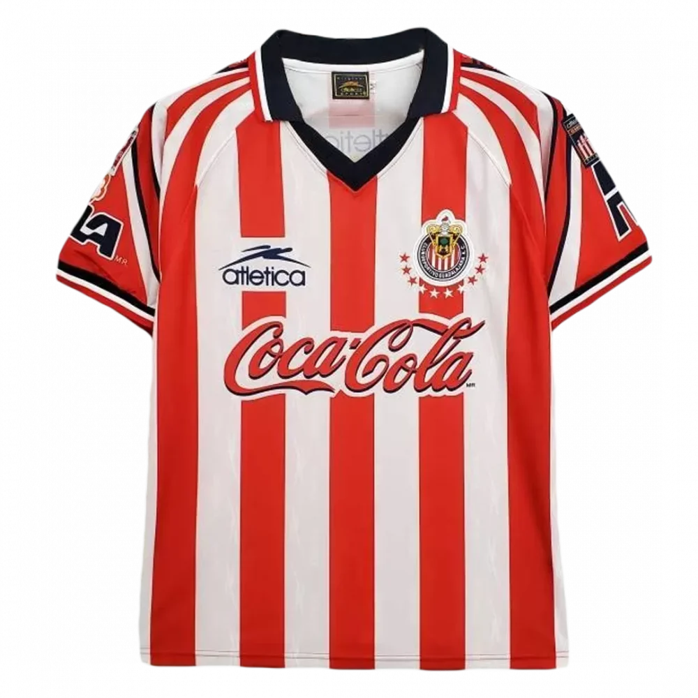 Step back into a legendary era with the Retro Chivas Home Jersey 1998/99, showcasing the classic red and white vertical stripes that define the club’s identity. Featuring a bold V-neck collar and authentic embroidered badge with iconic stars, this jersey celebrates Chivas’ proud tradition and passionate fanbase. Crafted from lightweight, breathable fabric with advanced moisture-wicking properties, it ensures comfort on and off the pitch.