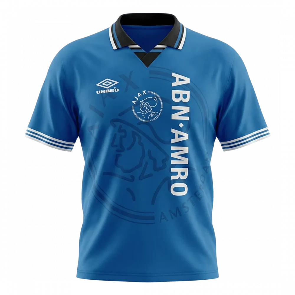 Step back to the iconic 1995/96 season with the Ajax Away Retro Jersey, a timeless tribute featuring a bold blue base accented by contrasting black and white stripes on the collar and cuffs. The jersey showcases a striking, oversized Ajax emblem layered subtly in the background with crisp sponsor lettering front and center, reflecting the club’s proud Amsterdam heritage and rich footballing legacy. Designed to keep you comfortable on and off the pitch, it combines breathable, lightweight fabric with advanced moisture-wicking properties.