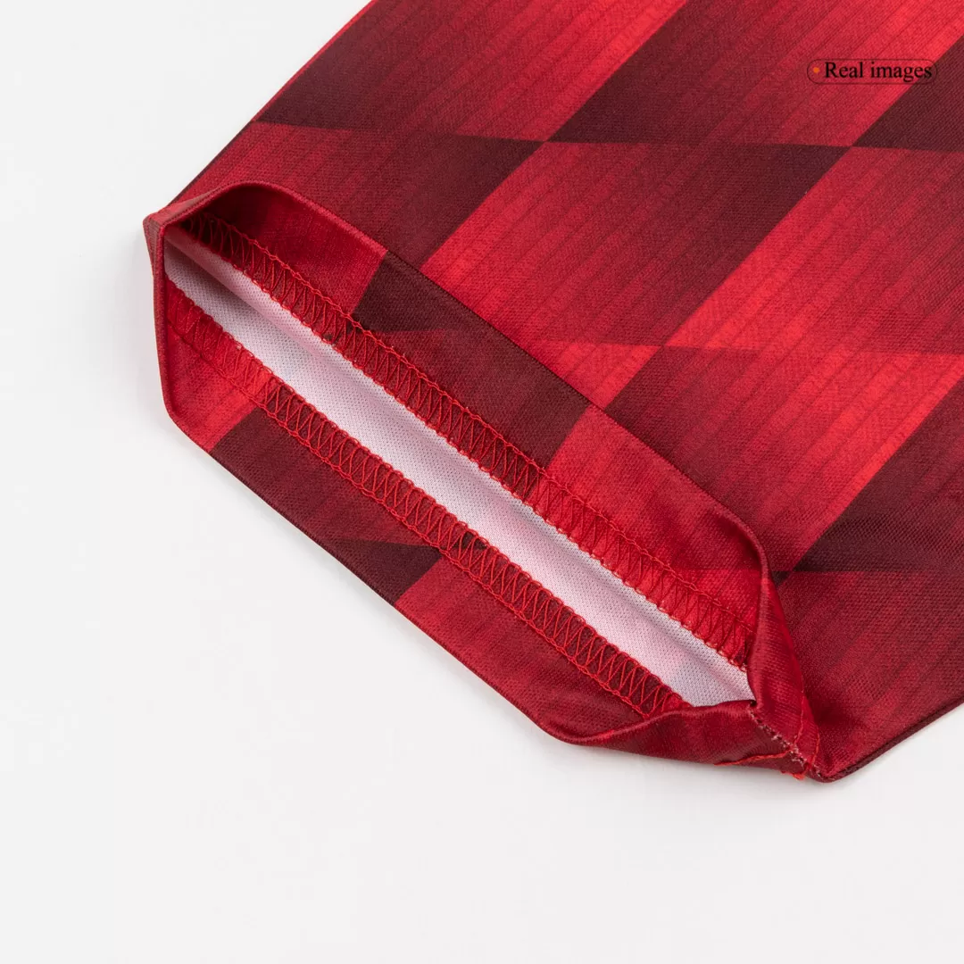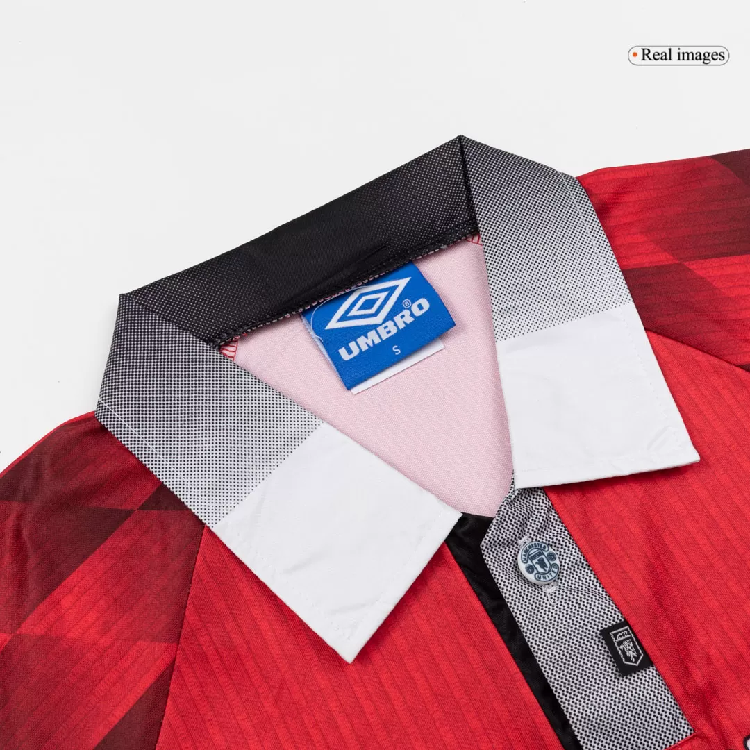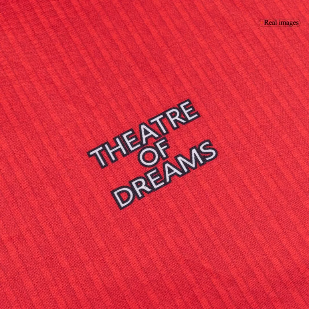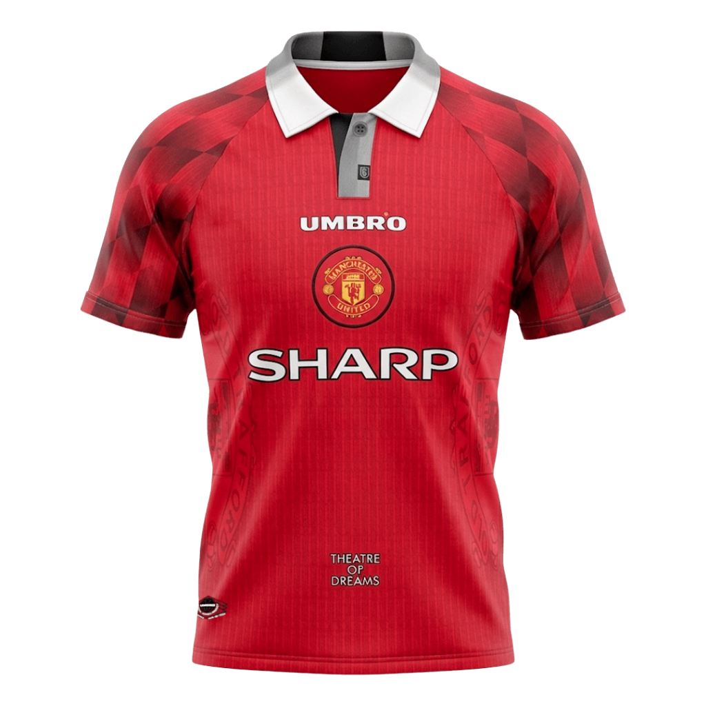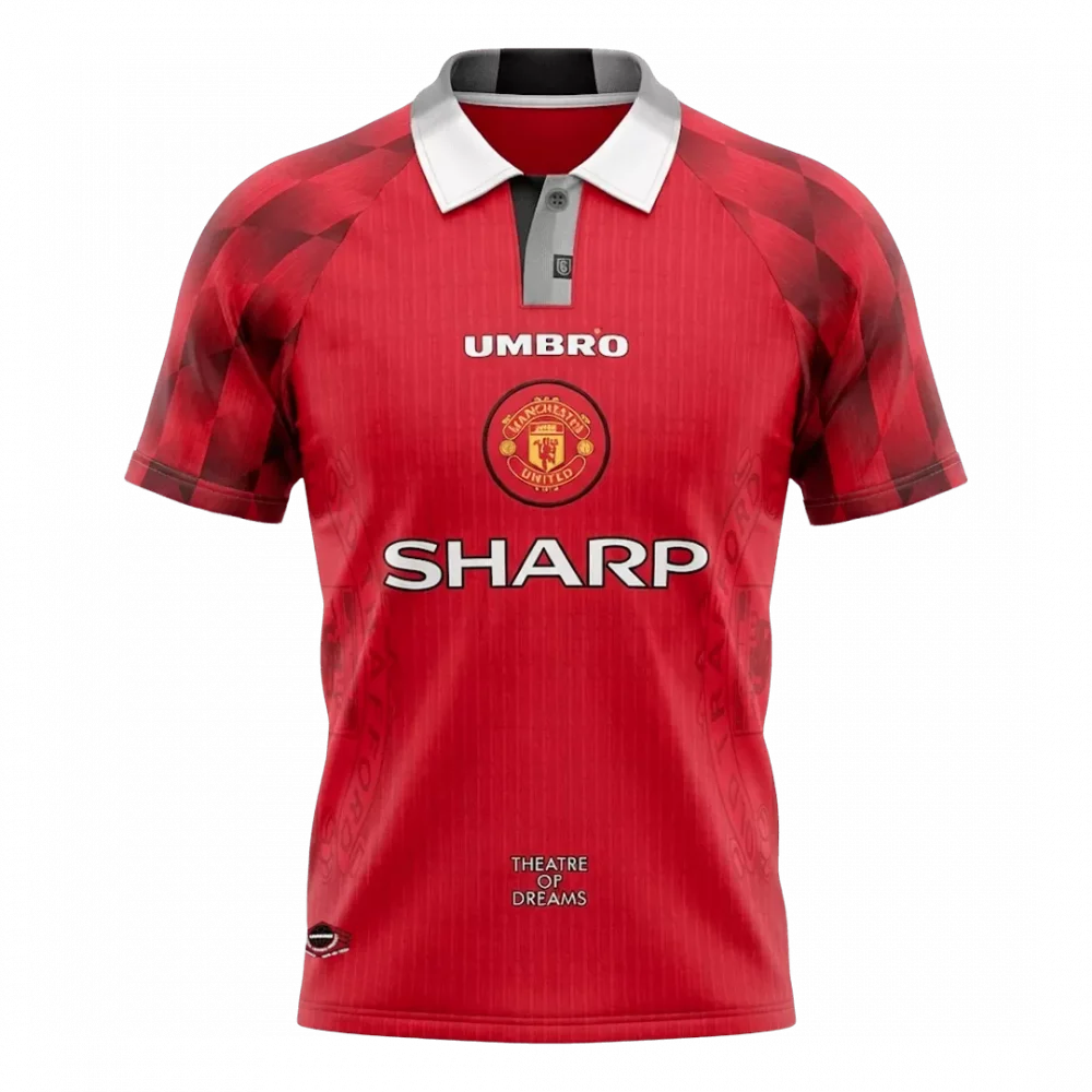 Step back into one of Manchester United’s most iconic eras with the Retro 1996/97 Home Jersey. Featuring a vibrant red base with subtle pinstripes and classic checkered sleeves, this design honors the heritage and passion of the Theatre of Dreams. The traditional white collar and button placket bring a timeless elegance, celebrating a season that defined modern football culture.