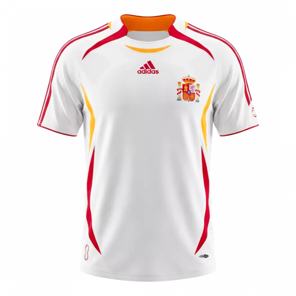 Step back to the thrilling 2006 era with the Retro Soccer Jersey Spain Away edition. This classic white jersey features bold red and yellow accents, echoing the vibrant Spanish flag and reflecting the nation’s football passion. The clean design celebrates a pivotal time when Spain’s team was laying the groundwork for its future dominance on the world stage.