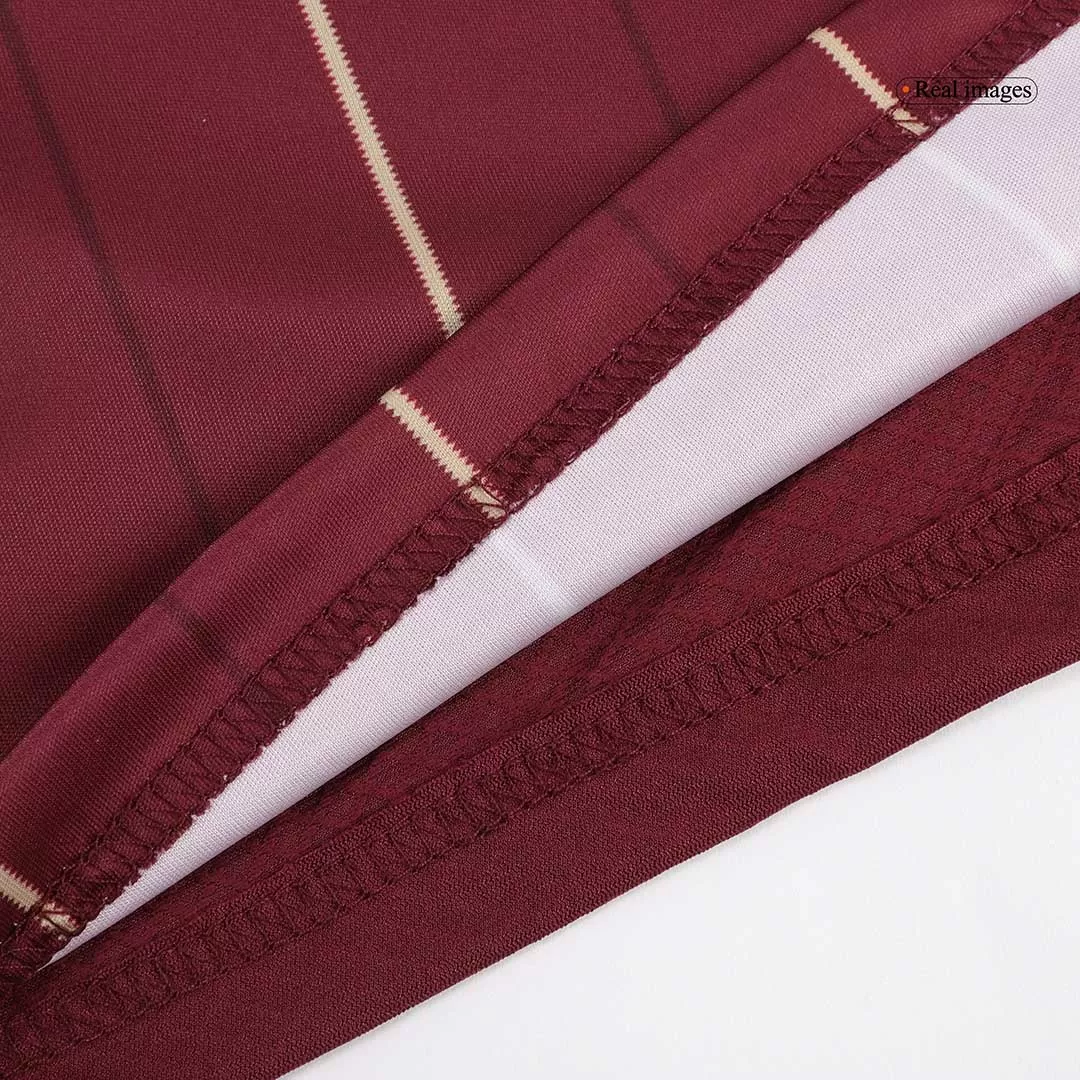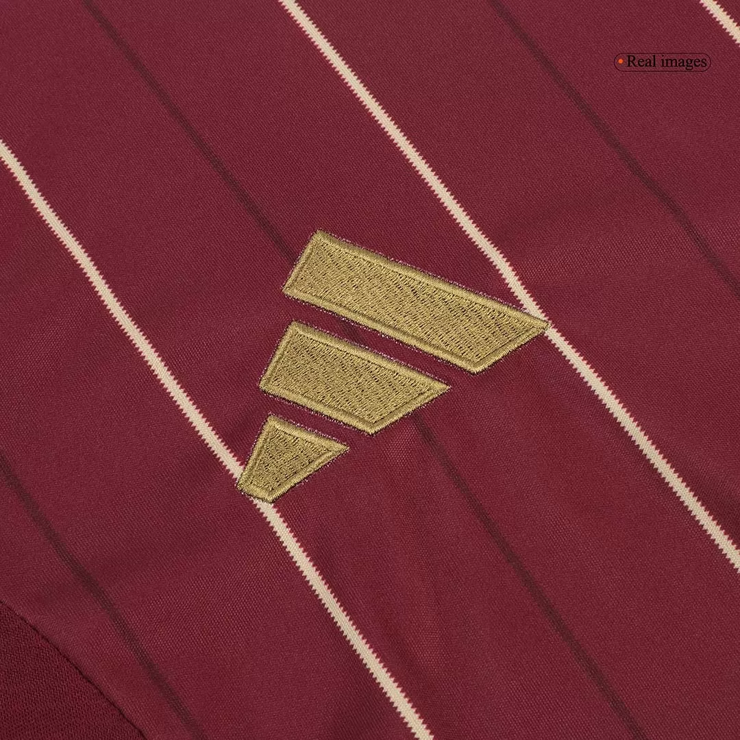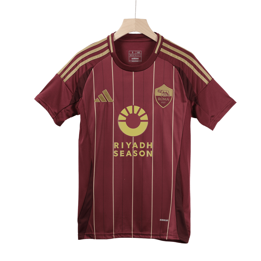 Step onto the pitch with the Roma Home Soccer Jersey, a striking tribute to the club’s rich history and passion. Featuring bold maroon hues accented by elegant gold pinstripes and detailing, this jersey honors Roma’s iconic colors and legendary spirit since 1927. Crafted for peak performance, it combines breathable, lightweight fabric with advanced moisture-wicking properties to keep players cool and comfortable during every intense moment.