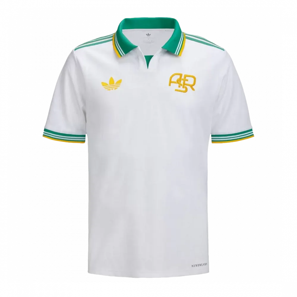 Step onto the pitch with the Roma Third Away Soccer Jersey 2025/26, a sleek tribute to the club’s rich heritage and bold spirit. This jersey features a crisp white base accented with green and yellow stripes on the collar and cuffs, reflecting a vibrant energy inspired by the city’s vibrant culture. The subtle texture and the classic polo design offer a timeless look, while advanced moisture-wicking fabric keeps players cool and comfortable throughout the game.