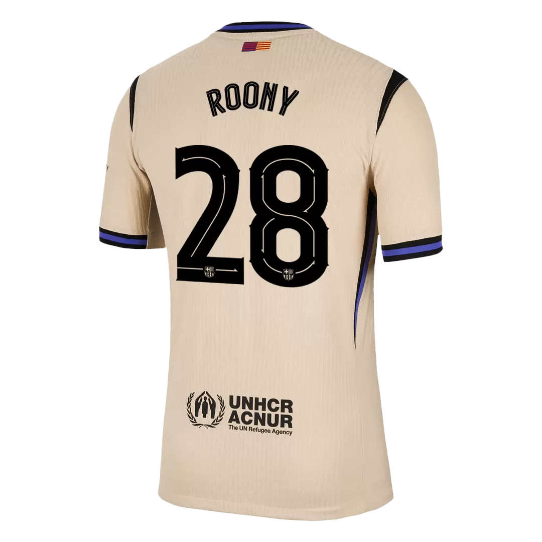 Step onto the pitch with the ROONY #28 Barcelona Away Player Version Jersey 2025/26, a sleek fusion of classic elegance and modern edge. Featuring a refined cream base accented by deep black and subtle purple highlights, this design pays homage to Barcelona’s rich heritage while embracing a fresh, contemporary look. The minimalist crest and streamlined details reflect the club’s dedication to style and substance, perfect for fans who value tradition and innovation.