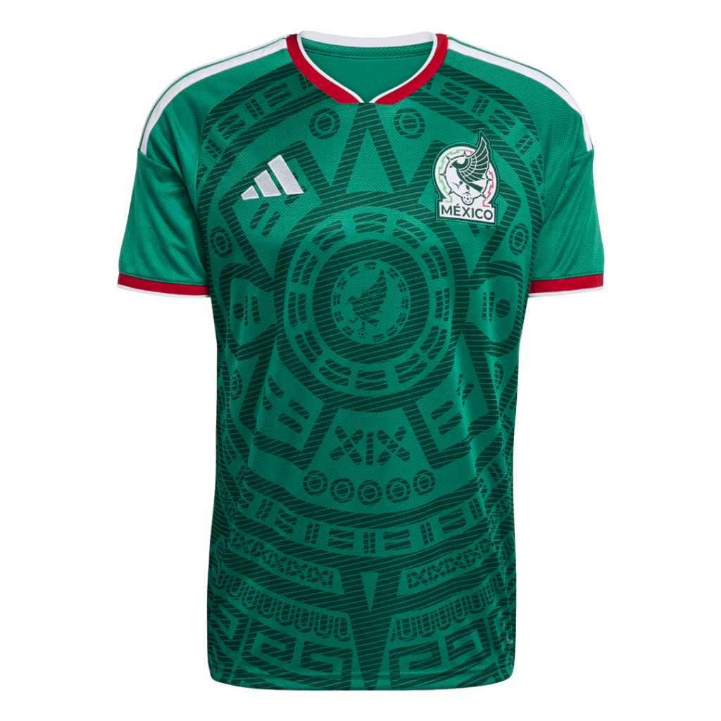 Step onto the pitch with the fierce spirit of Mexico in the S.Gimenez #11 Mexico Home Soccer Jersey for World Cup 2026. This striking green jersey showcases intricate Aztec-inspired patterns that pay homage to Mexico’s rich cultural heritage, paired with bold white numbering and red trim accents that symbolize the passion and pride of El Tri. A perfect blend of tradition and modern performance, this jersey is designed to keep you comfortable and focused during every game.
