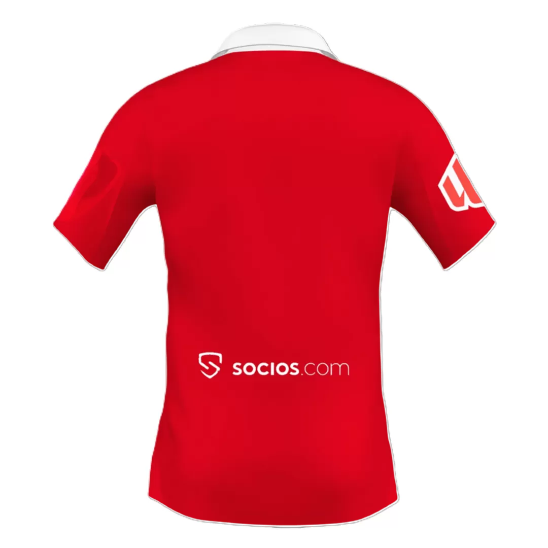 Step onto the pitch with the Sevilla Away Soccer Jersey 2025/26, where bold red takes center stage paired with a crisp white collar for a classic yet striking look. Subtle vertical pinstripes add depth and texture, while the iconic club crest proudly shines over the heart, honoring Sevilla’s rich tradition of passion and resilience. Engineered for peak performance, this jersey combines lightweight and breathable fabric with advanced moisture-wicking properties to keep you cool and dry in every challenge.