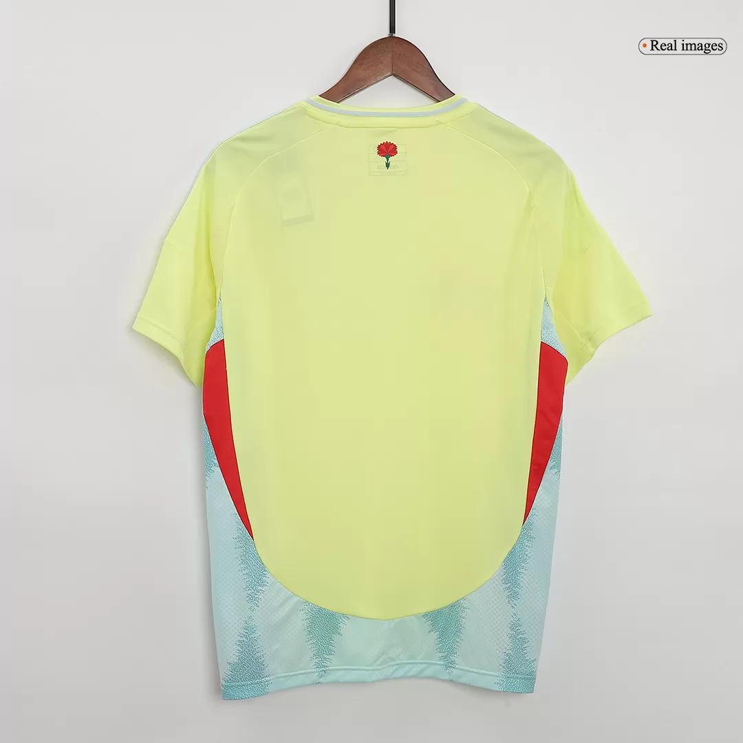 Command the pitch with the Spain Away Soccer Jersey EURO, a sleek tribute to La Roja’s bold spirit. Featuring a vibrant neon yellow base accented by sharp red detailing and the iconic national crest, this jersey captures the passion and precision of Spanish football. Designed to celebrate Spain’s proud history of flair and dominance, it’s a perfect blend of style and performance.