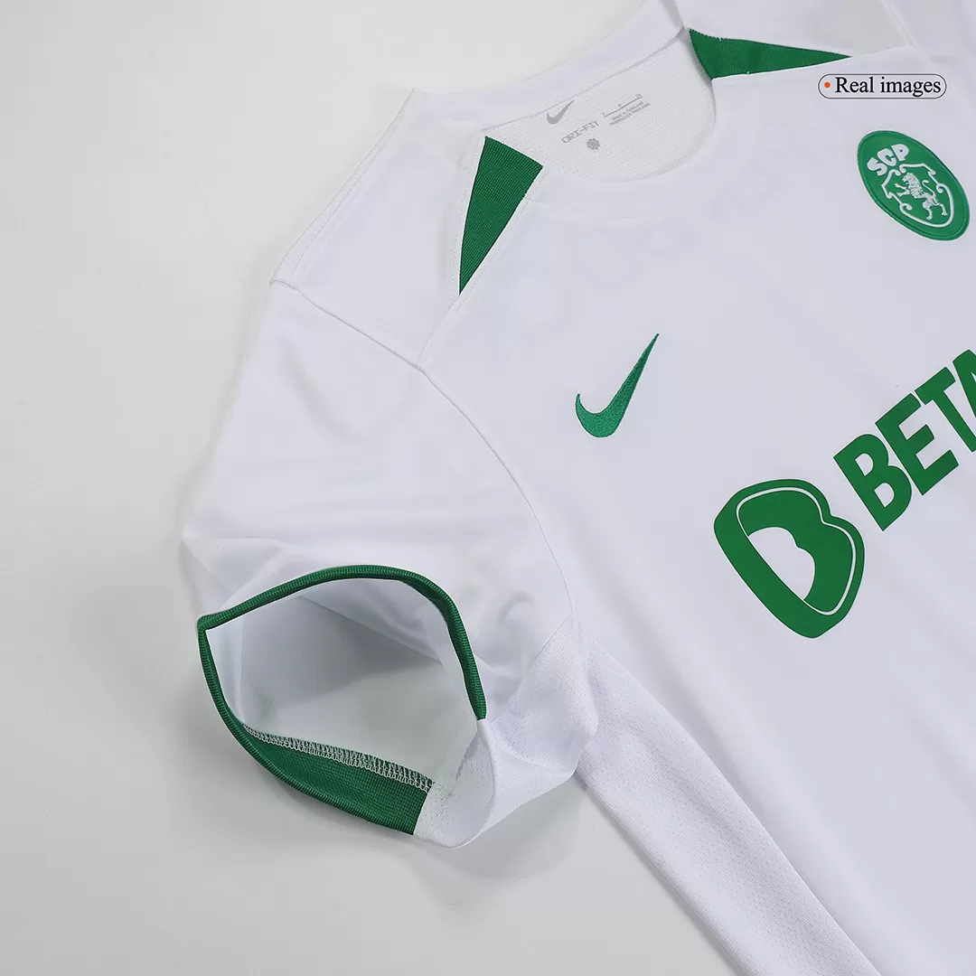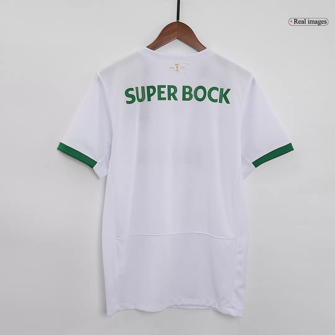 Celebrate decades of Sporting CP pride with the 60th Anniversary Soccer Jersey, a sleek tribute in pristine white accented by deep green trims that reflect the club’s timeless colors. This design honors the rich history and enduring spirit of the Lions, symbolized by the classic crest and subtle commemorative details. Built for performance, it combines breathable and moisture-wicking fabric to keep you cool and comfortable from kick-off to the final whistle.