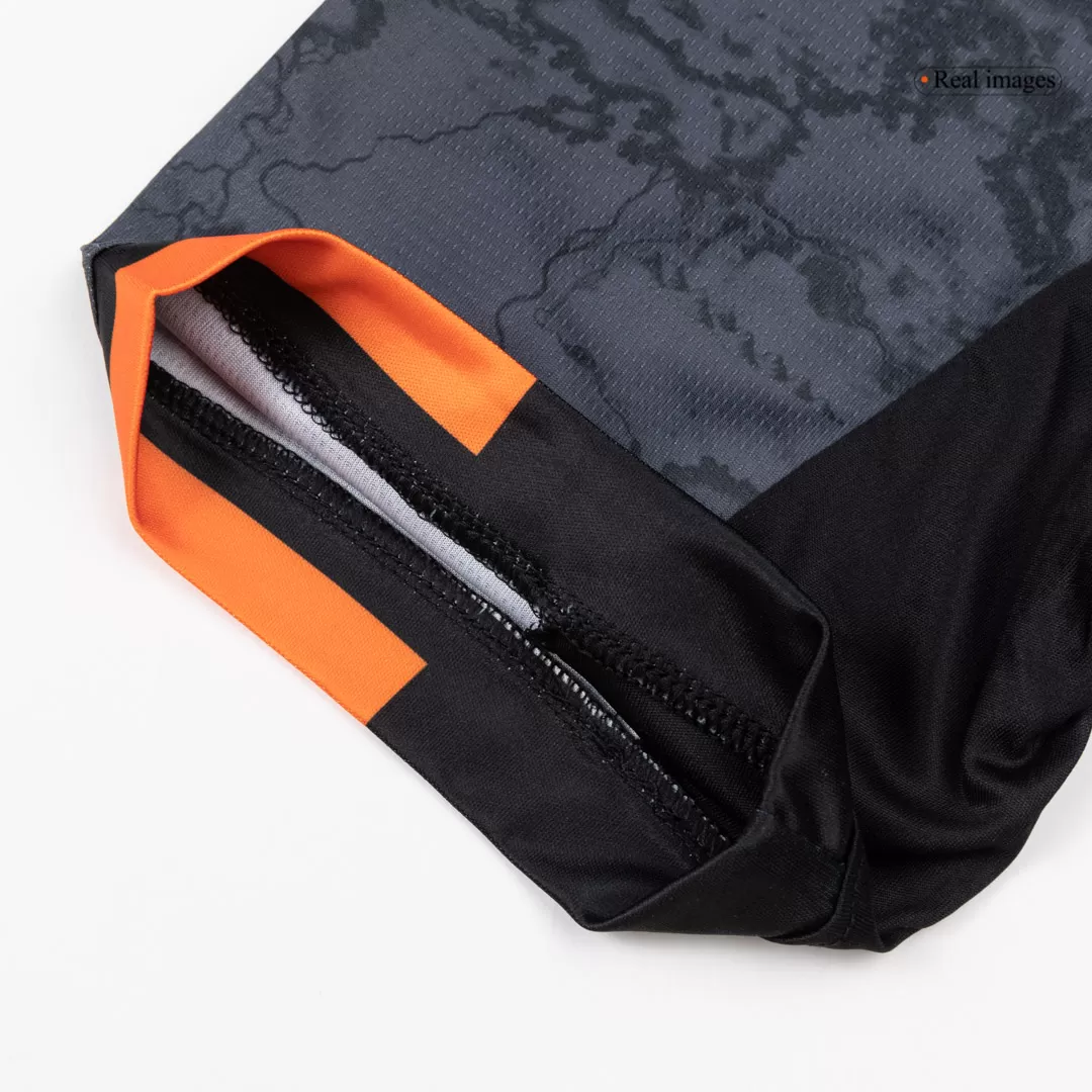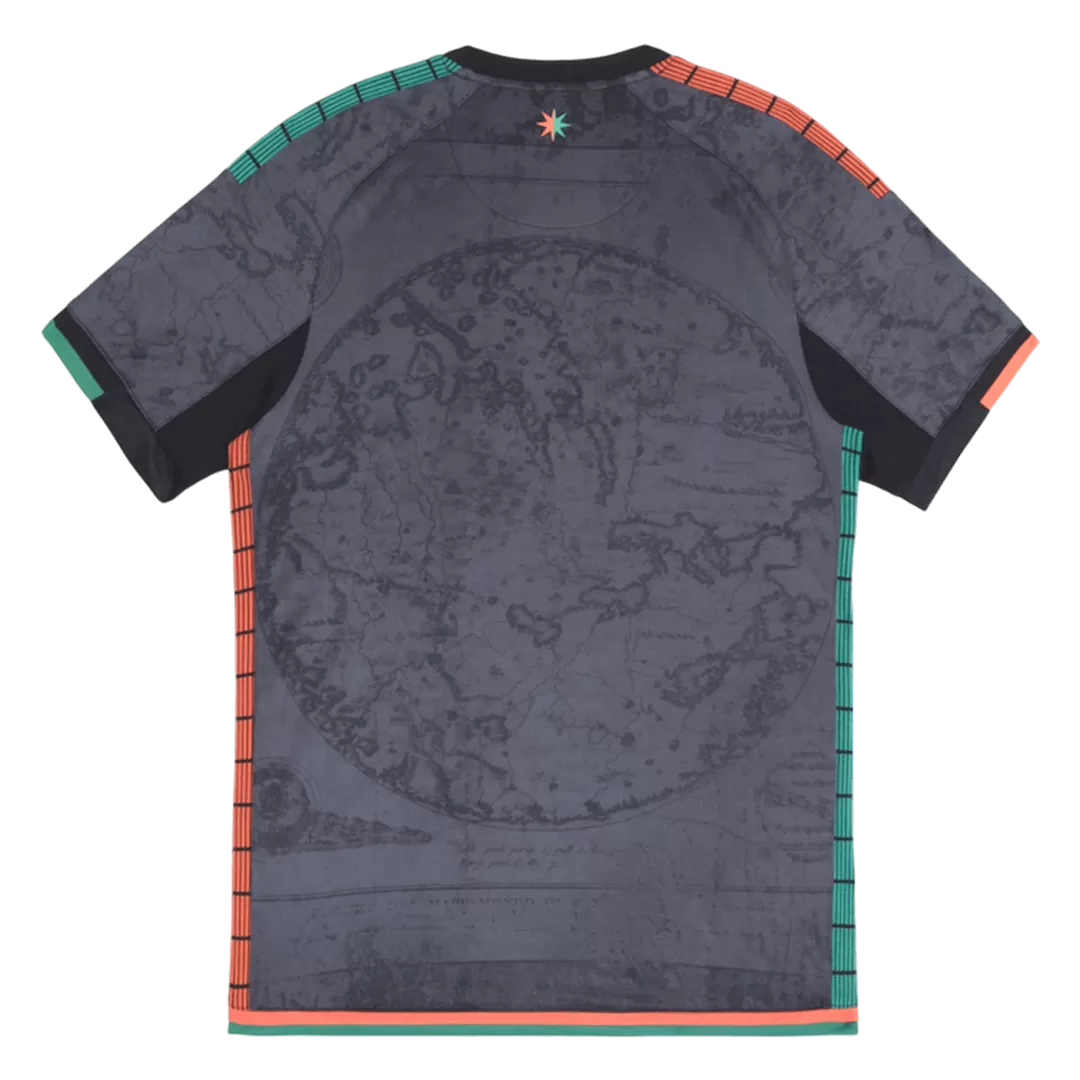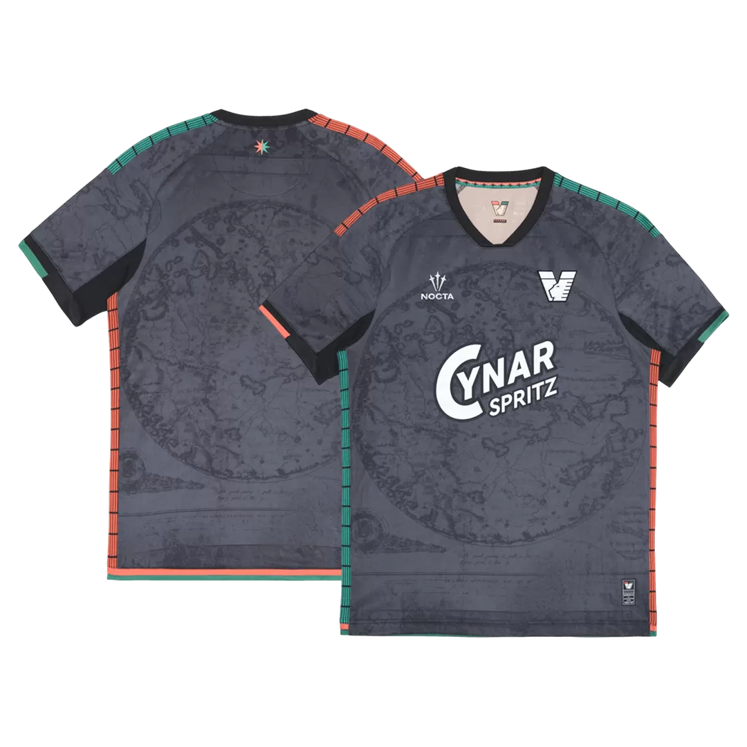 Step into the future of Venezia FC with the 2025/26 Home Soccer Jersey, where modern design meets rich tradition. The dark, textured base features subtle map-like patterns, paying homage to the city’s nautical heritage, while vibrant teal and orange accents on the shoulders and sides inject bold energy inspired by the iconic Venetian lagoon colors. A sleek, V-shaped collar completes the look, embodying the club’s spirit and ambition for the new season.