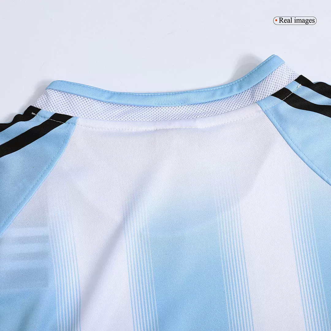 Step into the legacy of Argentine football with the Vintage Argentina Home Jersey from the 2004/05 season. Featuring the iconic sky blue and white vertical stripes paired with contrasting sky blue sleeves and a classic V-neck collar, this jersey celebrates the passion and pride of La Albiceleste. The embroidered crest with two stars honors Argentina’s historic World Cup triumphs, making it a timeless tribute to their football heritage.