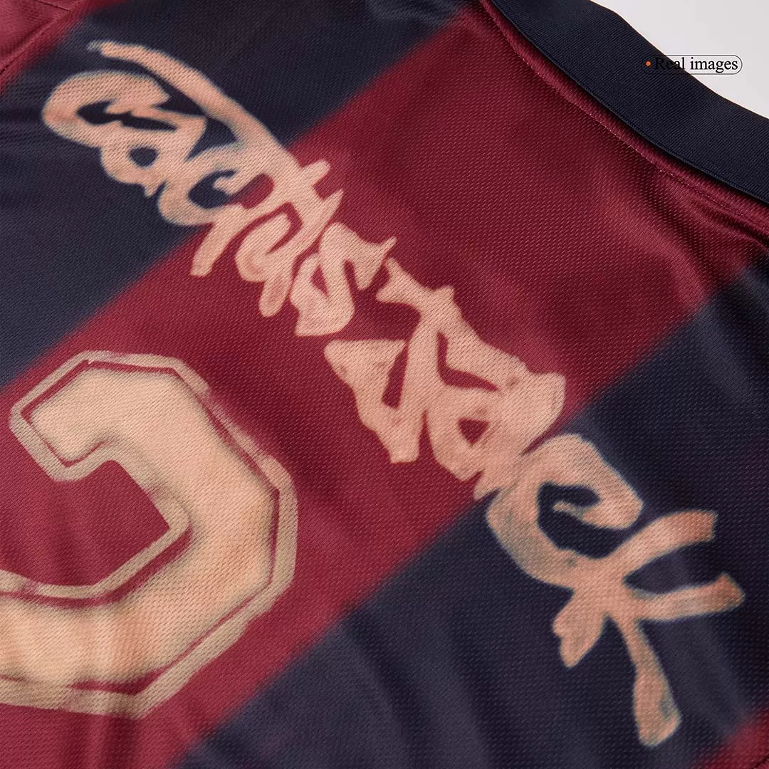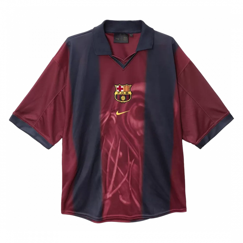 Step back into the glory days of football with the Vintage Soccer Jersey Barcelona X CJ Home 2000/01. Featuring the club’s iconic deep maroon and navy vertical stripes, this jersey captures the spirit and passion of one of the world’s greatest football teams. The subtle, artistic detailing on the front adds a unique texture, while the classic collar pays homage to a vintage style revered by fans worldwide.