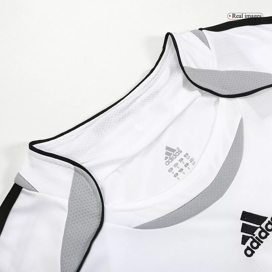 Step into football history with the Vintage Soccer Jersey Beckham #23 Real Madrid Home 2006/07. Featuring the classic all-white design accented by bold navy blue lettering and subtle grey side panels, this jersey embodies the timeless elegance and winning spirit of Real Madrid. Worn by one of football’s iconic playmakers, it celebrates a memorable era for Los Blancos, blending tradition with enduring style.