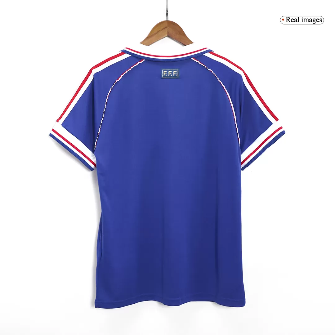 Step into football history with the Vintage Soccer Jersey France Home 1998 World Cup. Featuring a bold blue base with iconic red and white stripes, this classic design honors the triumphant spirit of Les Bleus who conquered the world on home soil. The traditional collar and sleeve detailing perfectly capture the elegance and pride of French football culture, making it a timeless piece for any fan.