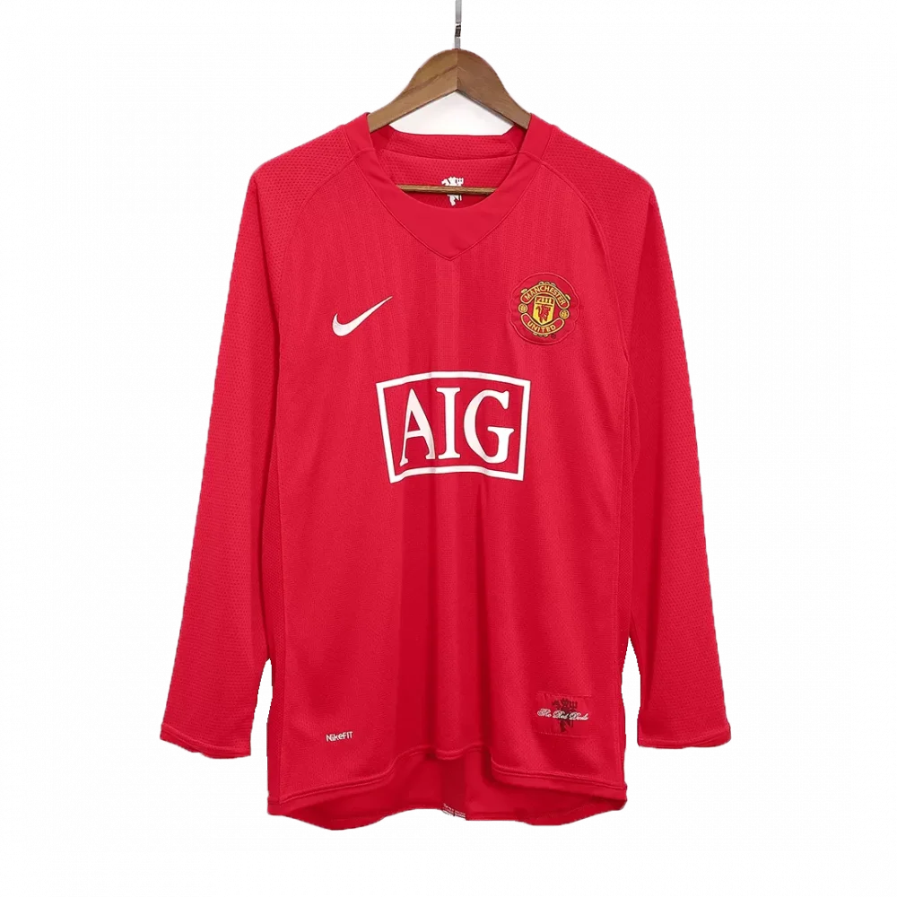 Step back into a golden era of Manchester United football with this Vintage 2007/08 Home Long Sleeve Jersey. Featuring the club’s iconic red base, subtle vertical striping, and the legendary crest, this jersey embodies the spirit and pride of the Red Devils’ storied history. Its clean design honors the team’s pursuit of excellence while delivering lightweight comfort and breathability to keep you game-ready on and off the pitch.