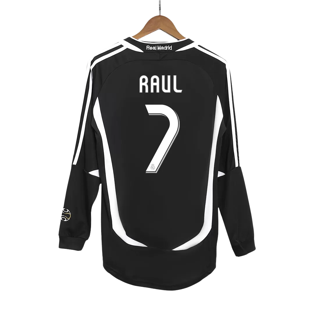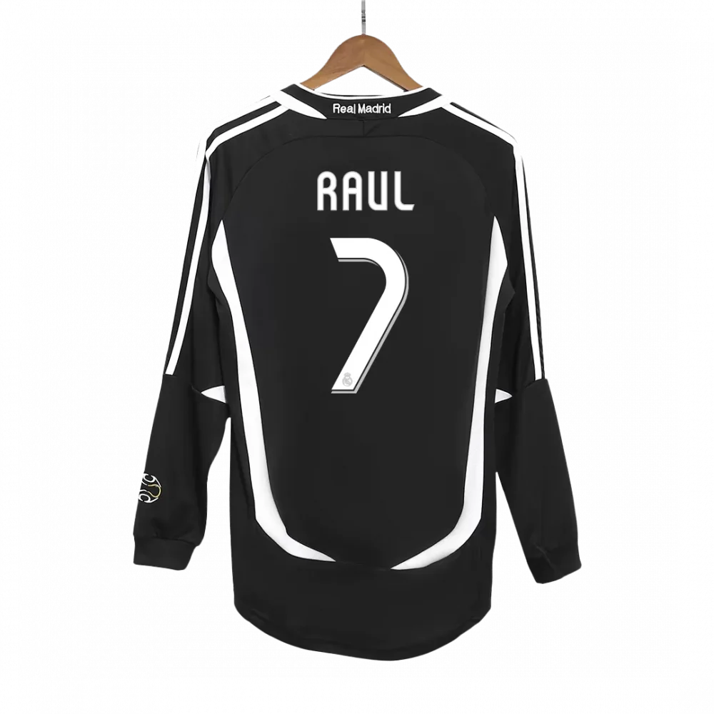 Step back into one of Real Madrid’s iconic eras with the Vintage Soccer Jersey RAUL #7 Away Long Sleeve 2006/07. This classic black and white design captures the elegance and strength of Los Blancos’ away colors, delivering a timeless look that honors Raul’s legendary impact on the club’s history. Made from breathable, lightweight fabric with advanced moisture-wicking properties, this jersey combines vintage style with modern comfort for fans who want to wear a piece of football heritage.