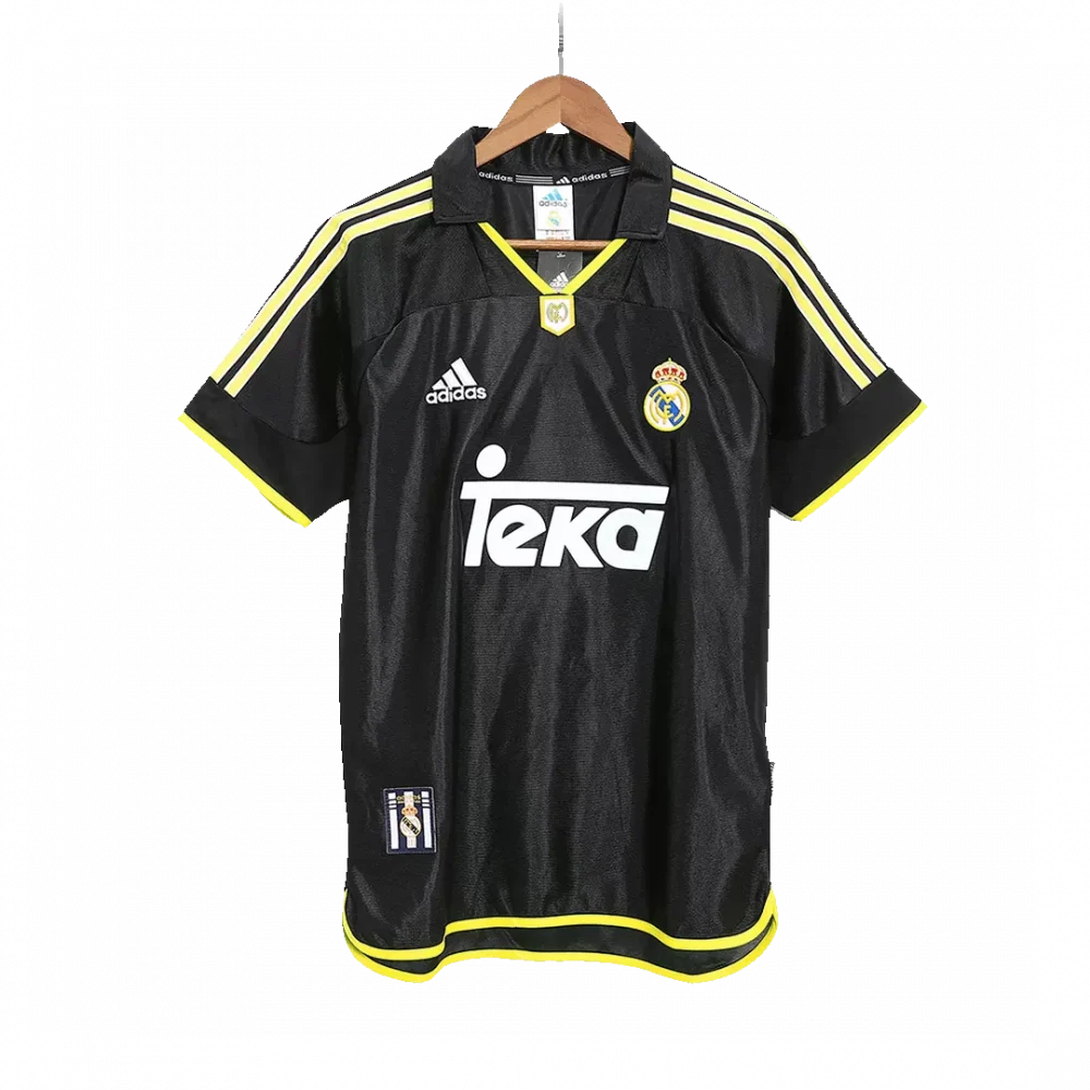 Step back into a golden era with the Vintage Real Madrid Away Jersey from 99/01, featuring a sleek black base highlighted by vibrant yellow accents along the collar, sleeves, and stripes. This iconic design pays tribute to one of the club’s memorable European campaigns, blending classic style with subtle modern flair. Crafted from breathable, lightweight fabric with advanced moisture-wicking properties, it keeps you comfortable whether on the pitch or cheering from the stands.
