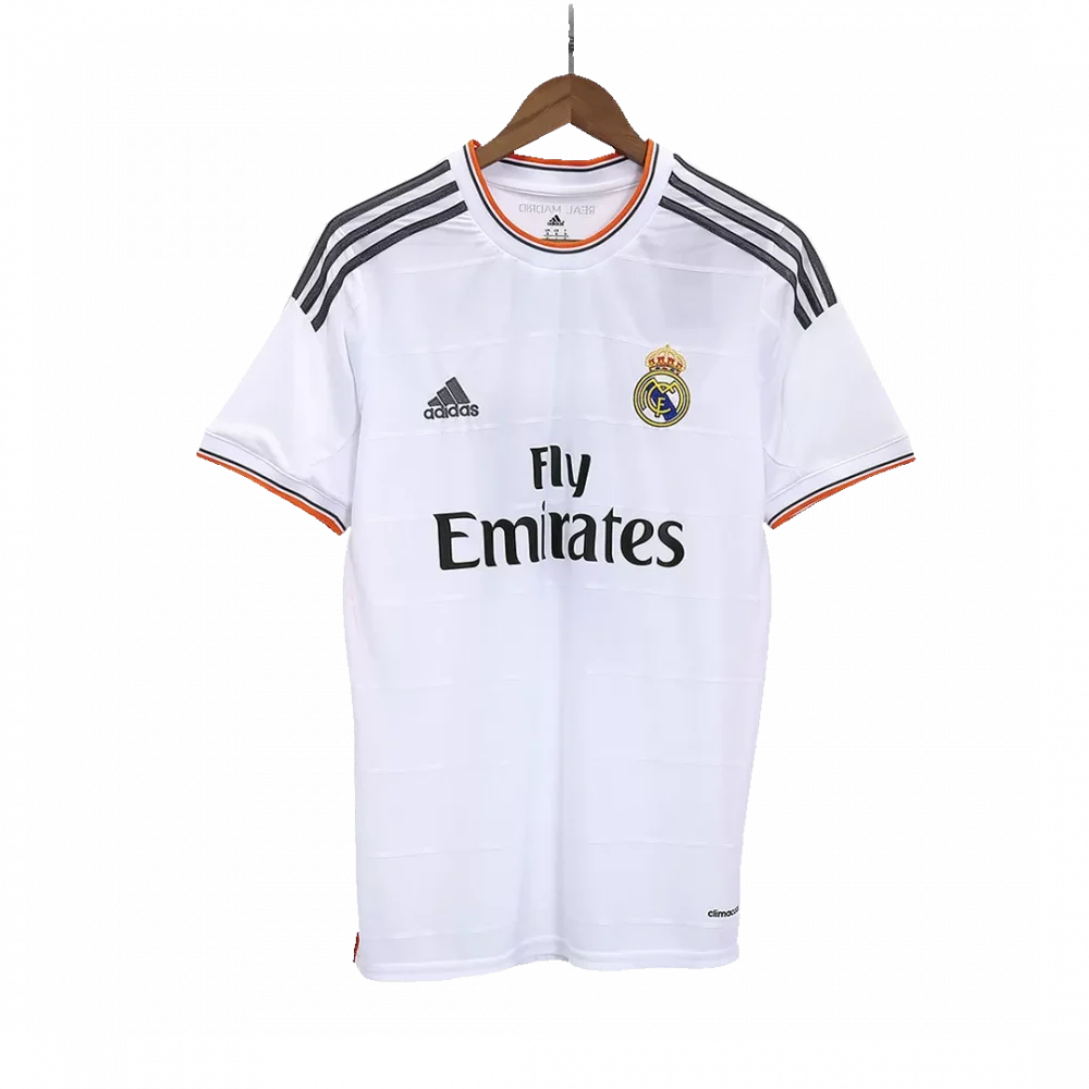 Step onto the pitch with the Vintage Real Madrid Home Jersey from the iconic 2013/14 season. Featuring the classic all-white design accented with subtle orange and black trim, this jersey embodies the timeless elegance and winning spirit of Los Blancos. The bold club crest proudly celebrates a history filled with legendary moments, while the sleek shoulder stripes add a touch of modern flair.