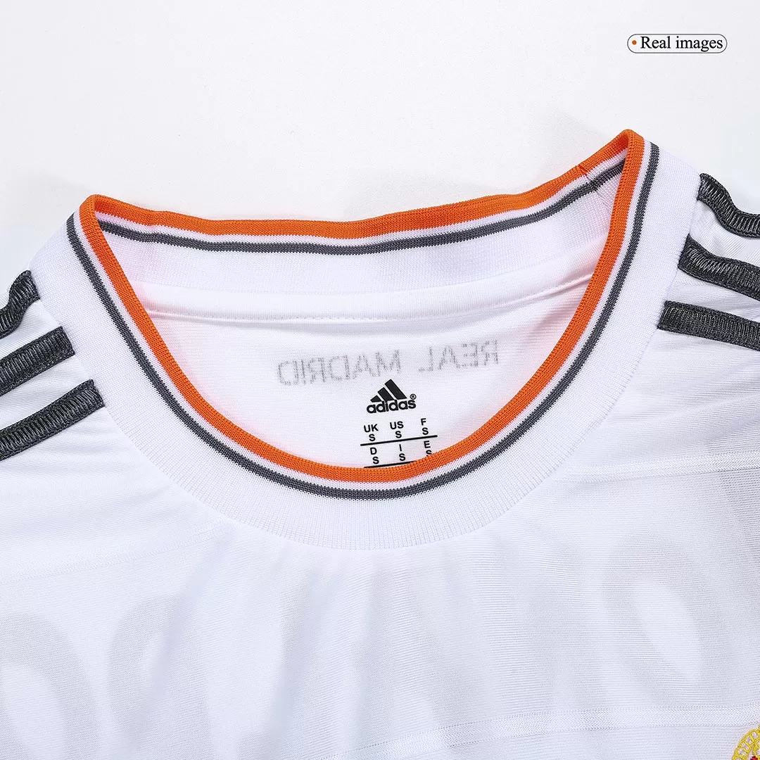 Step into football history with the Vintage Soccer Jersey featuring Ronaldo’s iconic #7 from Real Madrid’s 2013/14 home season. This classic white jersey features subtle black and orange accents on the collar and sleeve cuffs, embodying the elegance and prestige of Los Blancos during one of their most memorable campaigns. Celebrate the legacy of one of football’s greatest while enjoying a jersey designed to keep you comfortable with breathable, moisture-wicking fabric.