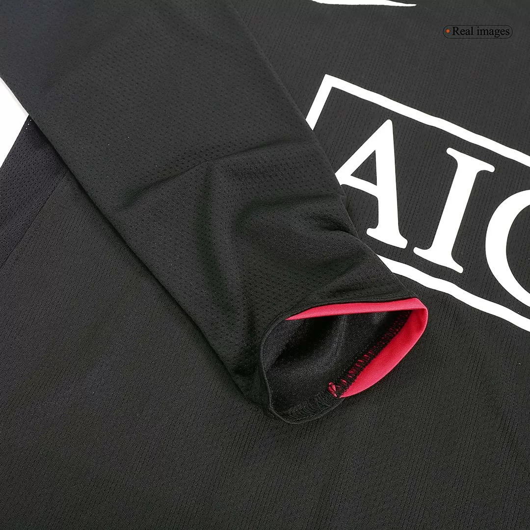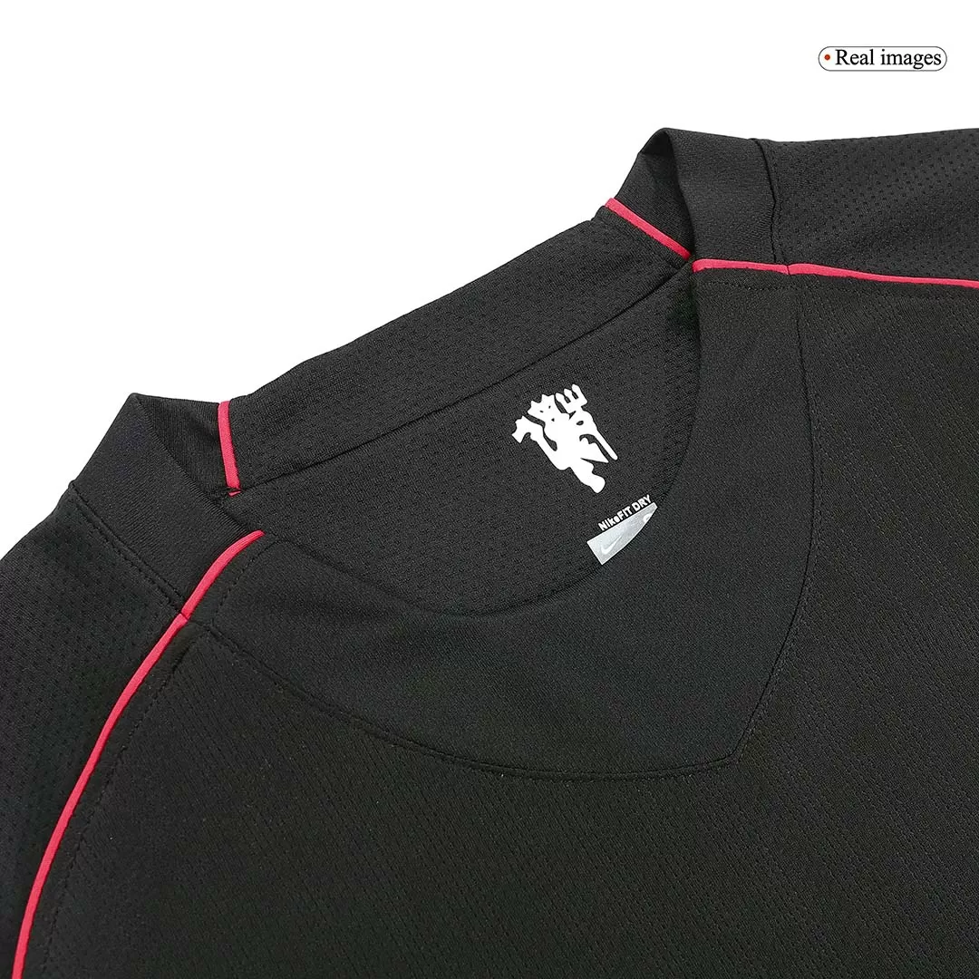 Step into the legacy of Manchester United with the Vintage 2007/08 Away Jersey, proudly bearing Scholes #18. This long-sleeve design features a sleek black base accented by bold red piping and subtle striping, embodying the fierce spirit and rich history of the Red Devils away on rival turf. Engineered for comfort and performance, it offers breathable, lightweight fabric with advanced moisture-wicking properties to keep you cool and dry, whether on the pitch or off.