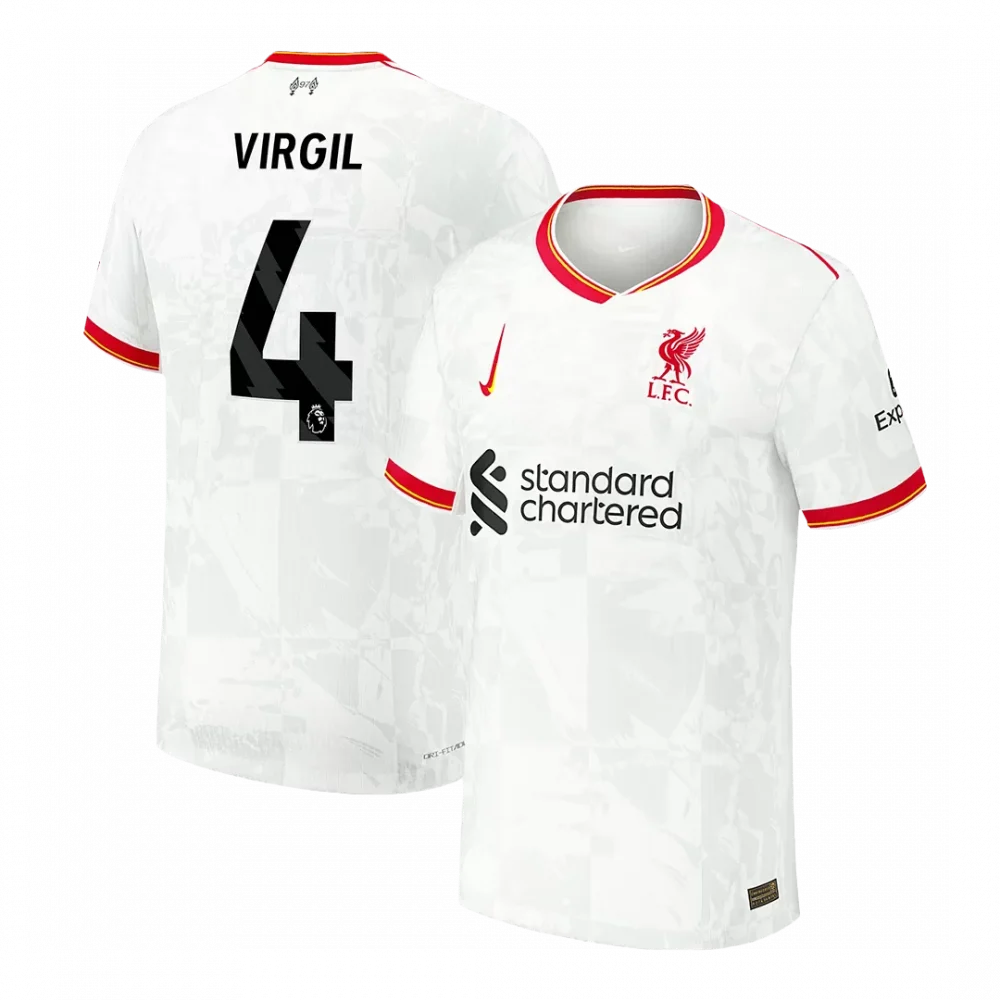 Step into the spirit of Anfield with the Liverpool Third Away Authentic Soccer Jersey, representing the legendary #4 Virgil. This sleek white jersey features subtle textured patterns inspired by the club’s iconic history, accented by bold red and yellow trim that energizes the classic design. Perfectly blending tradition with modern style, it celebrates Liverpool’s relentless drive and passion on and off the pitch.