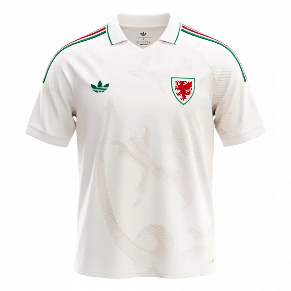 Step into the heart of Welsh pride with the Wales Away Soccer Jersey for World Cup 2026. Featuring a clean white base accented by subtle, traditional red and green stripes along the shoulders and collar, this kit pays homage to the iconic colors of the national team. A tonal dragon motif graces the front, echoing Wales’s fierce spirit and rich heritage on the global stage.