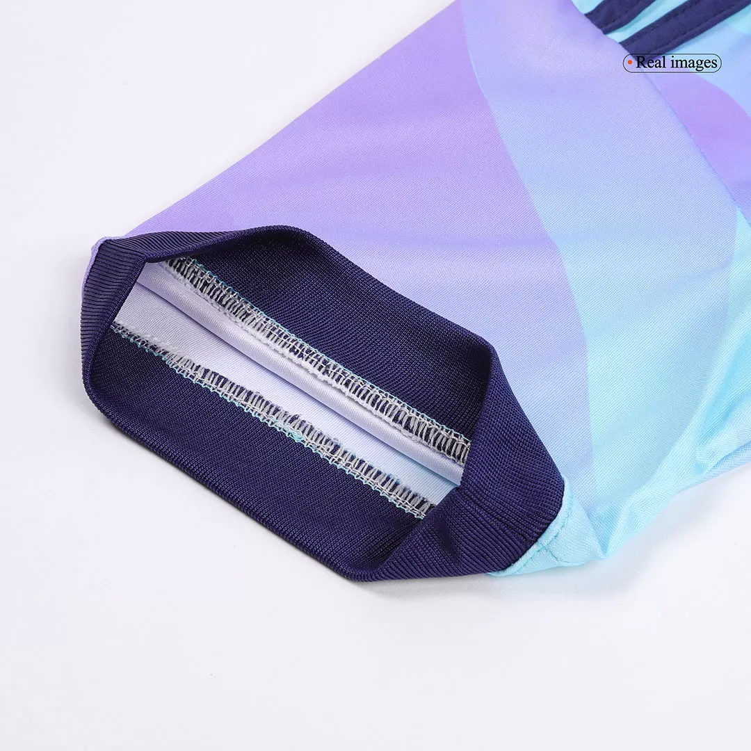Step into the spirit of Arsenal with the Women’s Third Away Jersey, featuring a striking light aqua base layered with sophisticated shadow patterns and deep navy accents on the collar, sleeve cuffs, and iconic shoulder stripes. This design pays homage to the club’s forward-thinking ethos, blending classic cannon symbolism with a fresh, modern look that embodies Arsenal’s pursuit of excellence on and off the pitch.