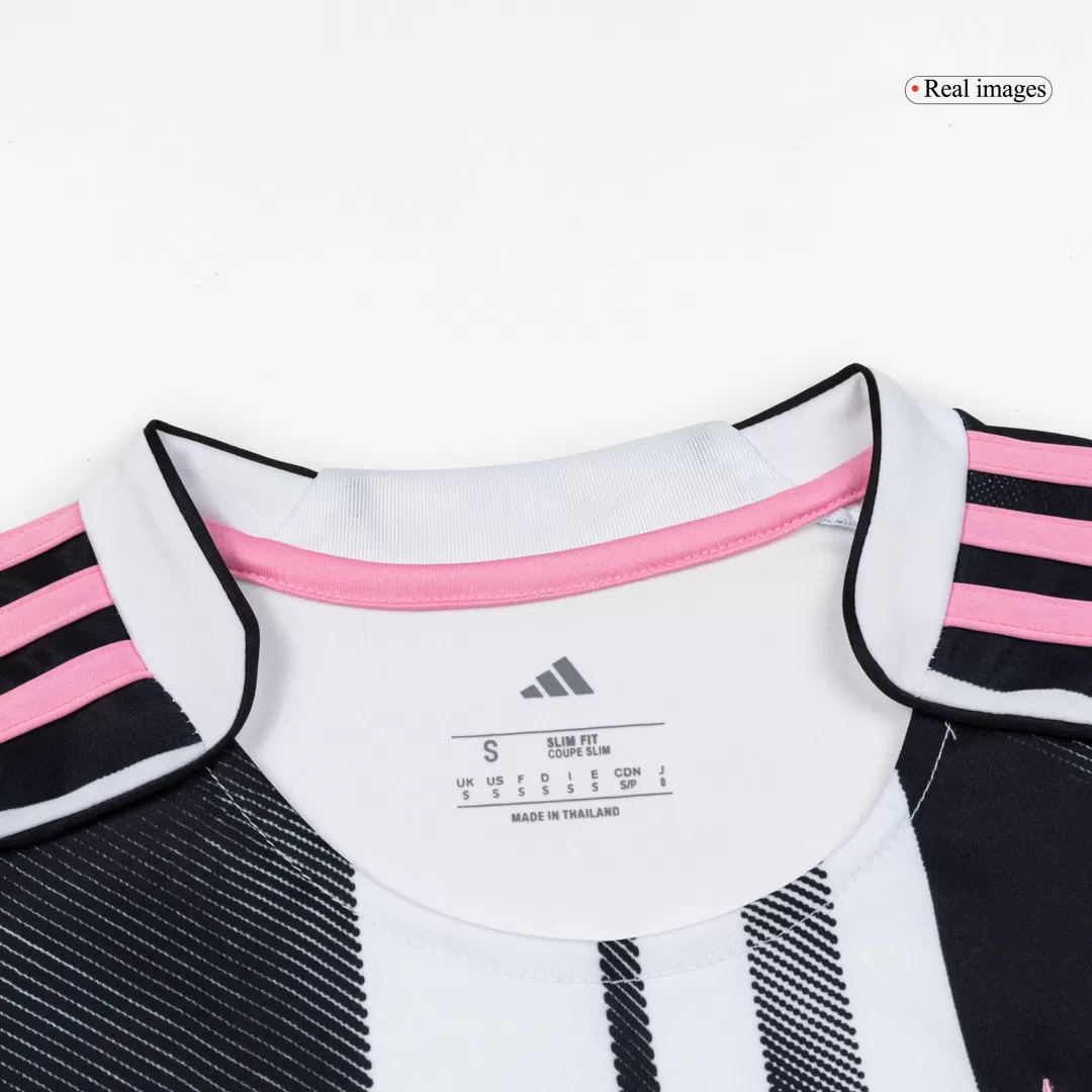 Step onto the pitch with the Women’s Juventus Home Jersey 2025/26, where tradition meets modern flair. This striking design features the iconic black and white stripes, reimagined with dynamic gradient lines and subtle pink accents on the stripes and logos, symbolizing Juventus’ commitment to strength and elegance. A proud tribute to the club’s winning legacy, this jersey combines timeless style with next-level comfort and performance.