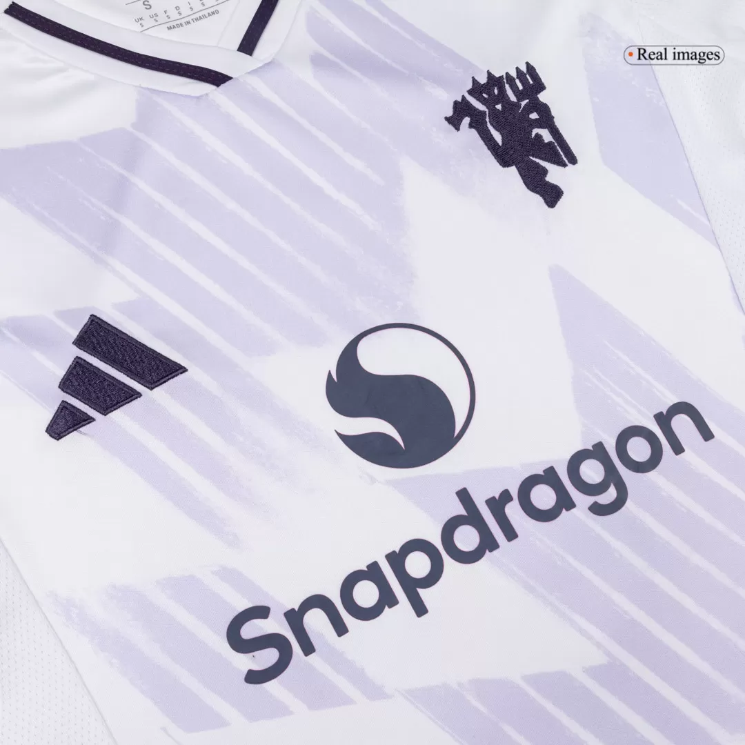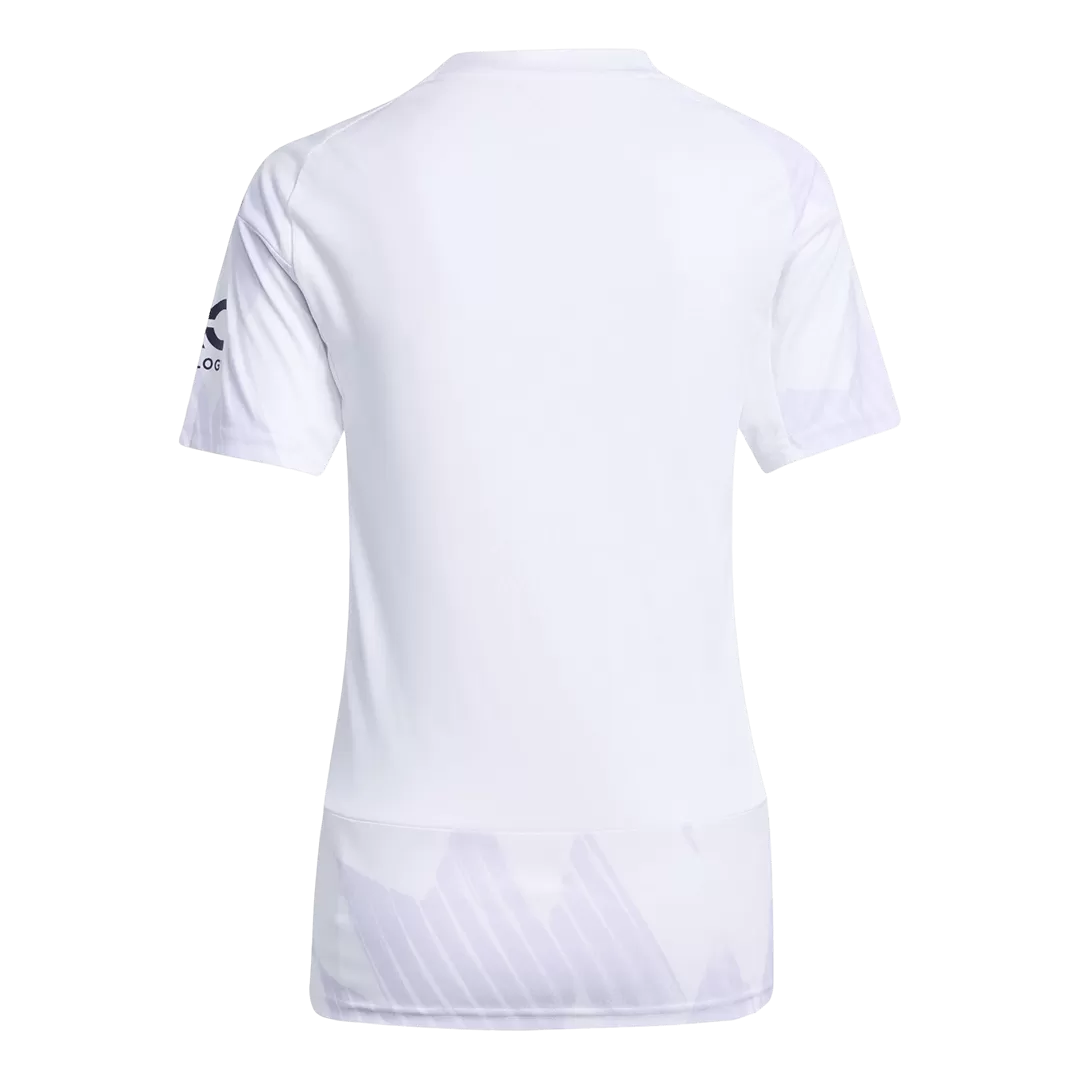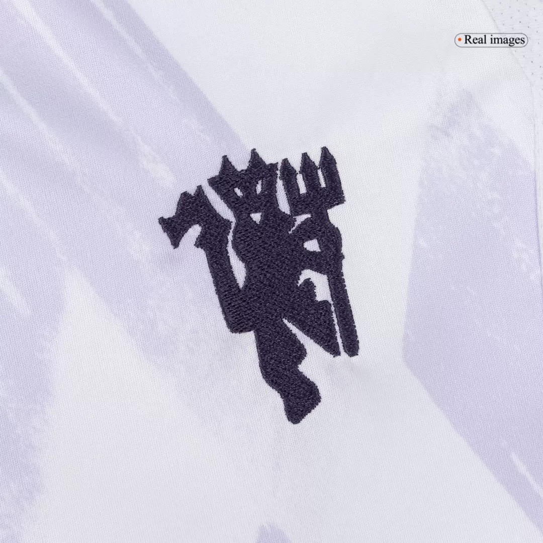 Step out with confidence in the Women’s Manchester United Away Jersey 2025/26, a sleek tribute to the club’s rich heritage. Featuring a clean white base accented by subtle geometric patterns and deep purple details, this jersey captures the spirit of Manchester United’s relentless pursuit of excellence. The modern V-neck and sharp shoulder stripes add a bold, contemporary edge, perfect for fans who embody the club’s winning tradition.