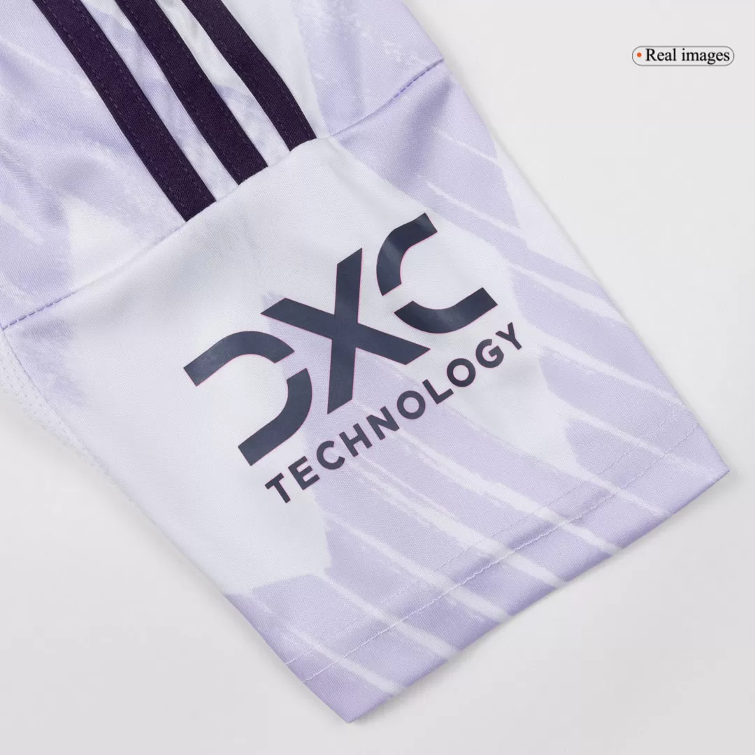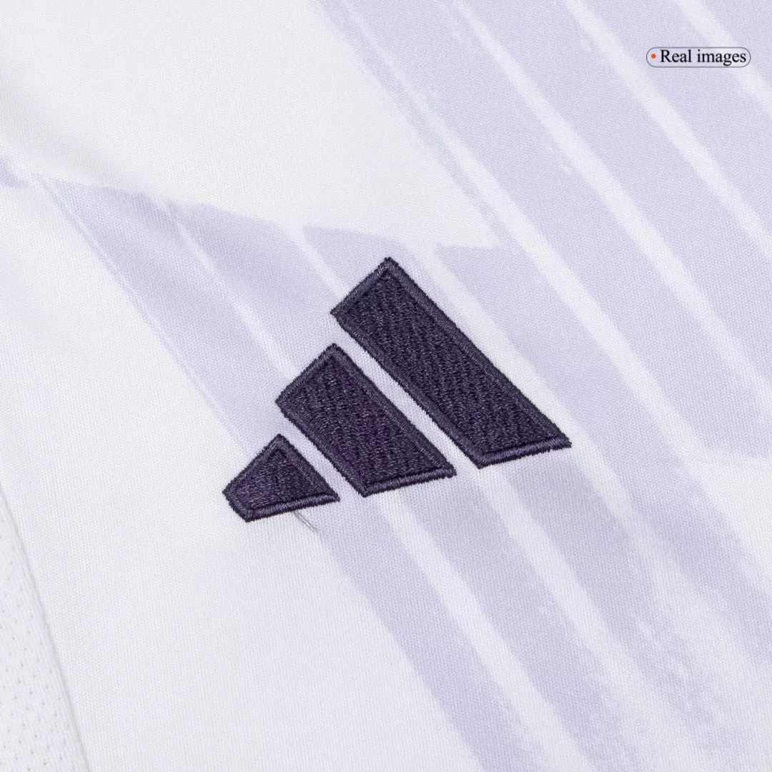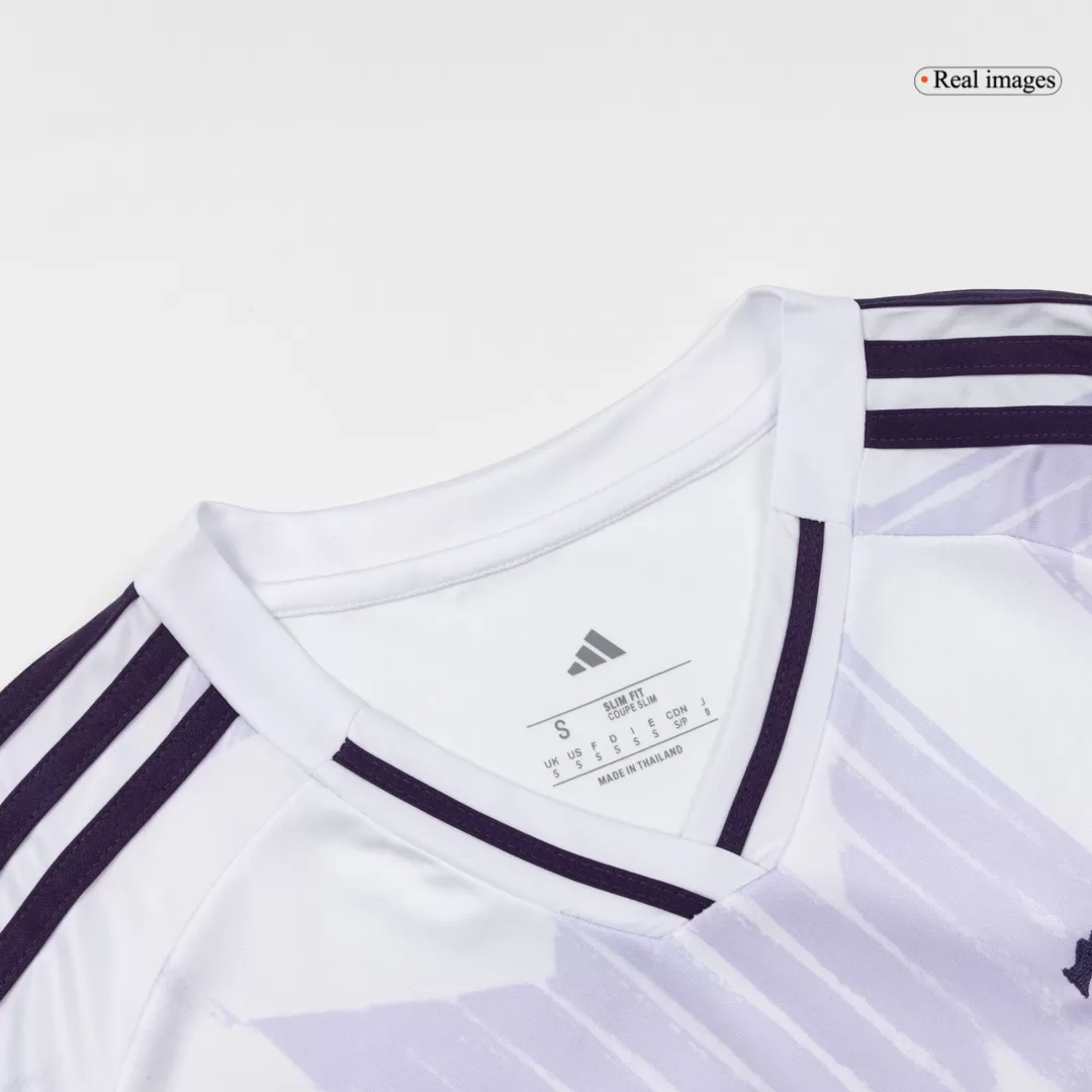 Step out with confidence in the Women’s Manchester United Away Jersey 2025/26, a sleek tribute to the club’s rich heritage. Featuring a clean white base accented by subtle geometric patterns and deep purple details, this jersey captures the spirit of Manchester United’s relentless pursuit of excellence. The modern V-neck and sharp shoulder stripes add a bold, contemporary edge, perfect for fans who embody the club’s winning tradition.