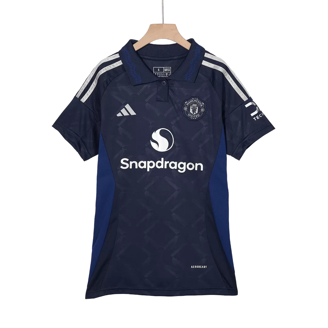 Step into the legacy of Manchester United with this striking Women’s Away Jersey, featuring a deep navy base accented by sharp silver details and a subtle geometric pattern that echoes the club’s bold spirit. The iconic crest sits proudly on the chest, symbolizing the rich history and relentless drive of the Red Devils as they conquer challenges on and off the pitch. Engineered for peak athletic performance, this jersey offers breathable, moisture-wicking fabric and a lightweight feel that moves with you during every match.