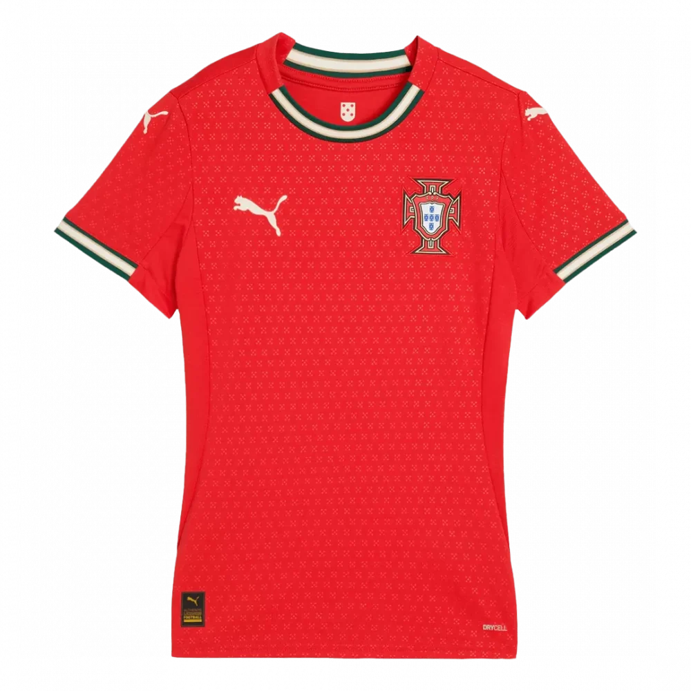 Step into the heart of Portuguese football with the Women’s Portugal Home Jersey 2025. This striking red jersey features subtle dotted patterns across the front, celebrating Portugal’s rich football heritage with a modern twist. Accented with green and white trim on the collar and sleeves, it honors the national colors and the iconic emblem on the chest symbolizes the pride and passion of the Portuguese team.