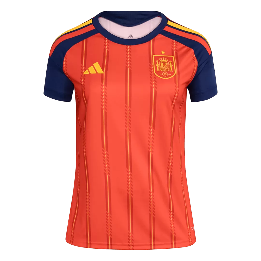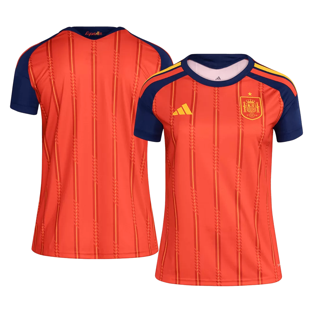 Step onto the pitch with the Women’s Spain Home Jersey World Cup 2026, a bold celebration of La Roja’s fiery spirit. This striking design features vibrant red with subtle vertical stripes and bold navy sleeves, accented by classic yellow details that honor Spain’s rich football heritage and passion for victory. Engineered for peak performance, it combines breathable, lightweight fabric and advanced moisture-wicking properties to keep you cool and focused through every play.